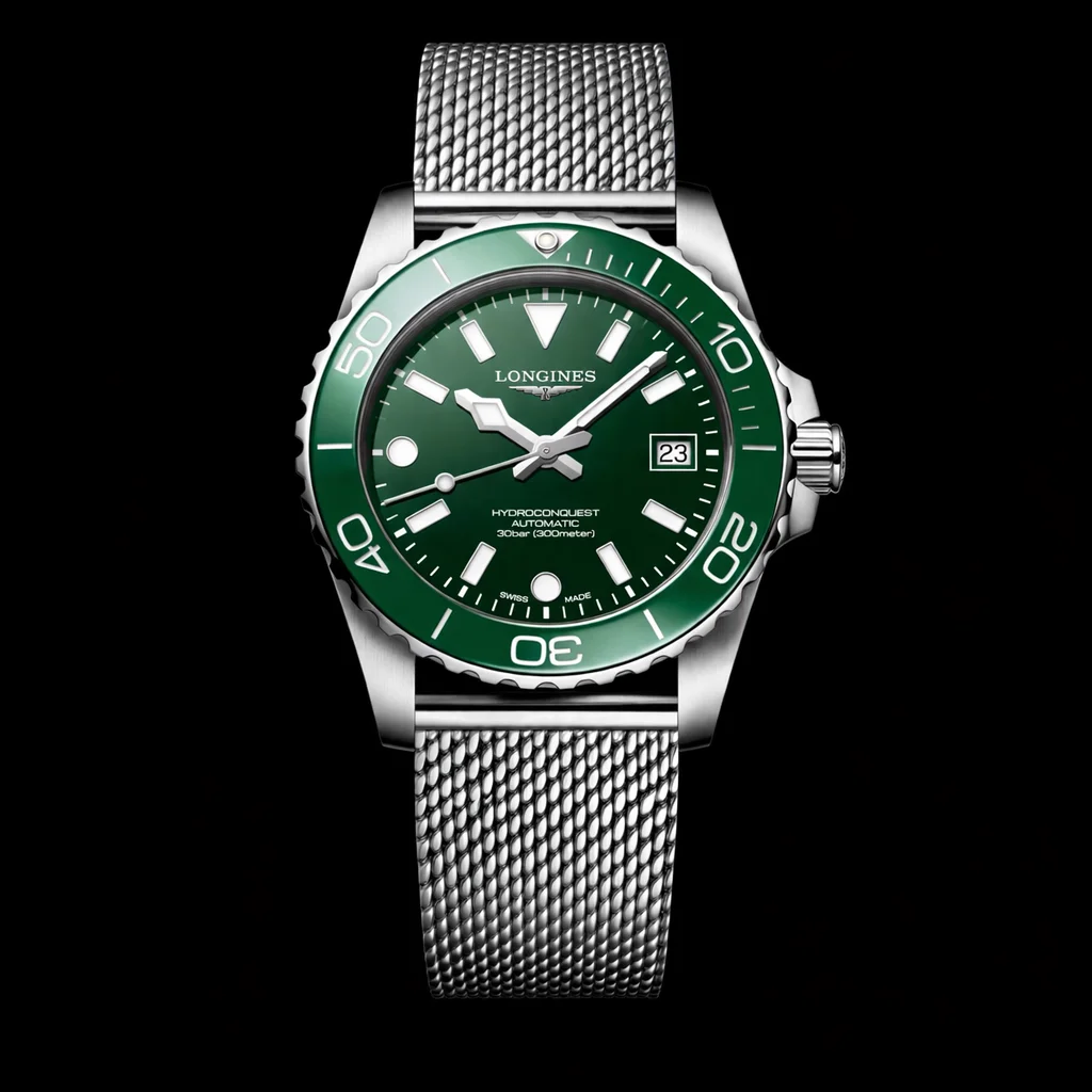 El de bisel de acero tenía el mismo movimiento del primer Hydroconquest (2824.2), pero con cambios evidentes en agujas, índices y, por supuesto, bisel.
