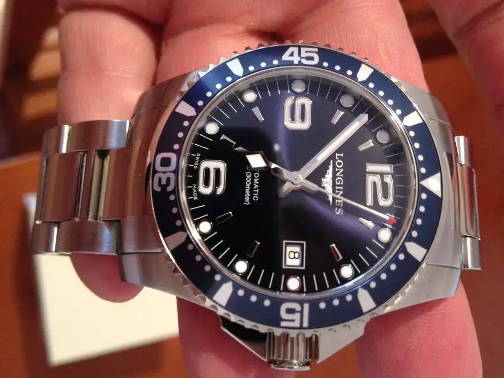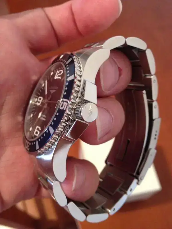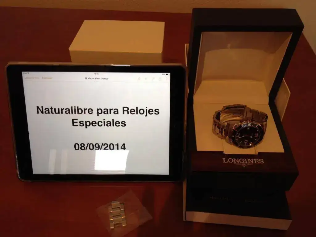 Buenas compañeros, saco a la venta este fabuloso Longines Hydroconquest Auto de 41 mm, con el precioso dial azul, en la buscada versión antigua como podéis ver. El reloj fue comprado por mi en una joyería nacional el pasado día 11/08/2014, por lo que tiene prácticamente toda la garantía por delante. El estado del reloj, que debido a la rotación con otras piezas se ha utilizado en contadas ocasiones, es EMHO, y siendo prudente, de 9 sobre 10. Sólo destacar como trato de mostrar en la segunda foto, algo común e inevitable en este modelo, el primer eslabón pulido a continuación del cierre muestra pelillos, visibles según se mire el reloj, debido a la posición del seguro, que por construcción, al abrirlo roza con el citado eslabón. Los pelillos son inapreciables y como digo inevitables en este modelo, en cualquier caso lo pongo para que lo sepáis. Por su puesto cuenta con todo su set y documentación cumplimentada. El precio, 550 euros con envío 24 horas por MRW son asegurar. No estoy interesado en cambios. Perdonad por las fotos, si necesitáis alguna en concreto pedírmela.