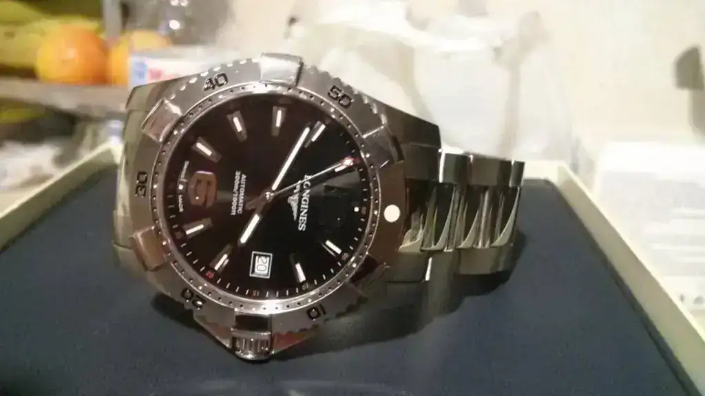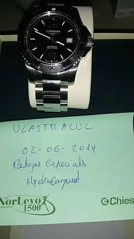 Dotacion del reloj:Toda...caja exterior blanca,caja interior gris oscuro simil piel,tarjeta de garantia sellada por distribuidor español de Longines,eslabones sobrantes del armis(actualmente ajustado a mi muñeca de 17,5-18cm),libro longines.