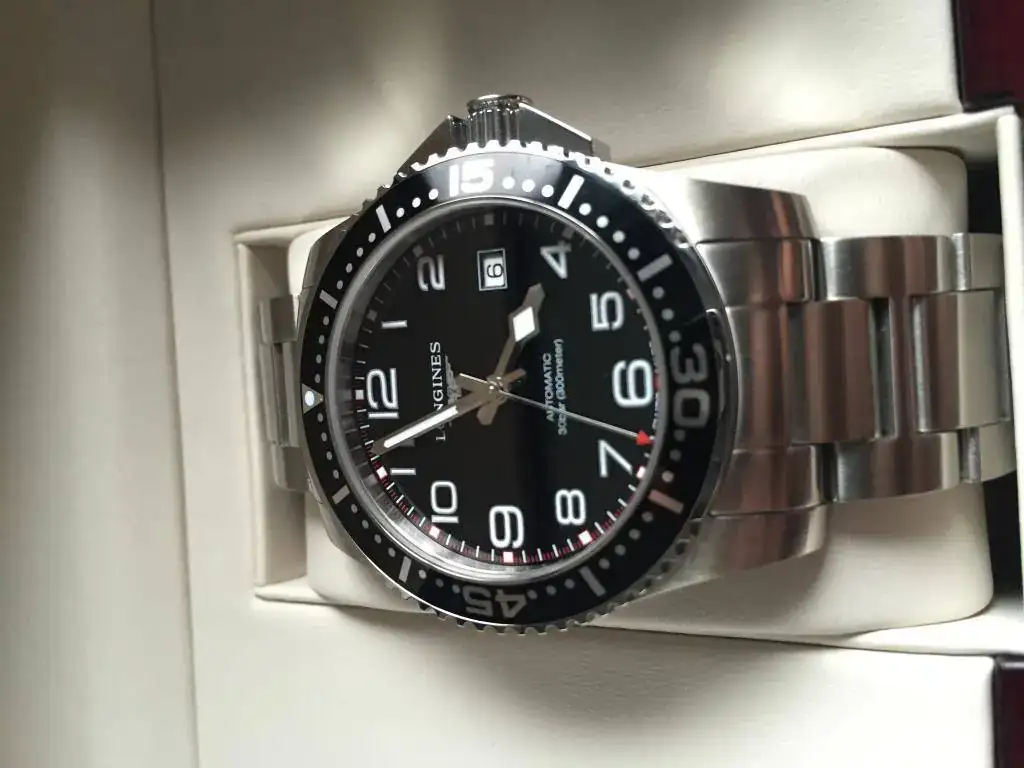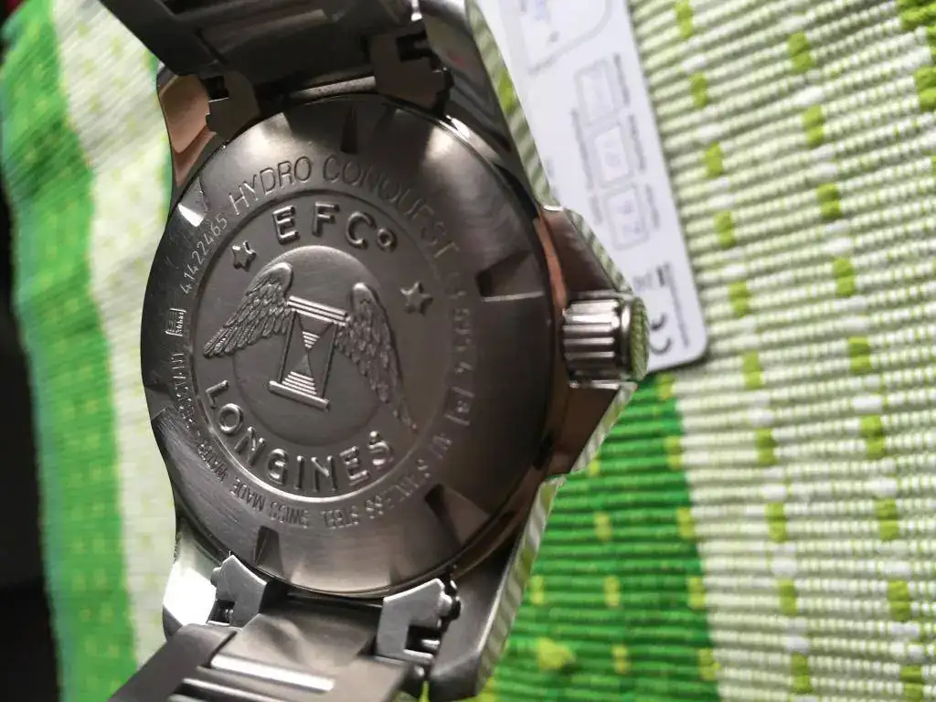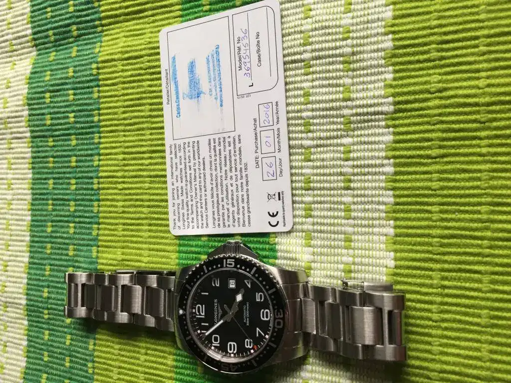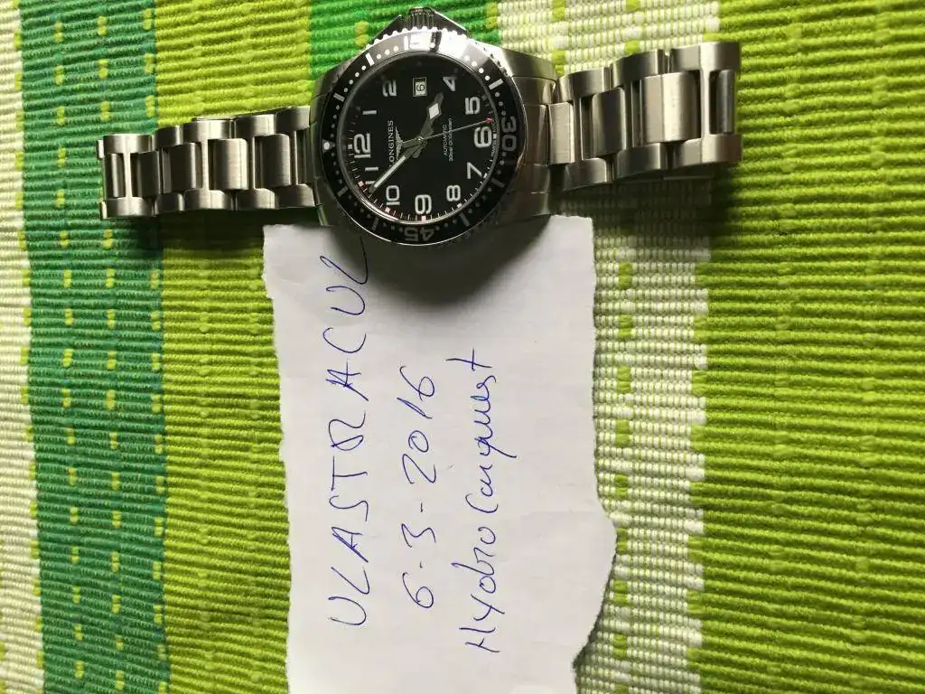Buenas tardes a todos/as,saco a la venta este Hydroconquest descatalogado,el reloj está usado(no tiene golpes ni marcas profundas por ningún lado)el cristal esta perfecto,el bisel tiene unas ligerísimas marcas a la altura del minuto 15(solo se perciben al trasluz)por lo demás esta perfecto.De marcha es fabuloso(en -3/5" día)vamos en cosc.El reloj va con toda su dotación de fábrica(caja exterior blanca,interior gris oscuro simil piel,libro Longines,tarjeta de garantía sellada y fechada)y eslabones sobrantes del brazalete.El reloj lo compre de segunda mano a un compañero,la tapa trasera esta matizada(anteriormente tenía una inscripción que se borro)me he bañado con él y sin ningún problema con la estanqueidad,bueno en esta ocasión no puedo aceptar cambios,lo siento.Un cordial saludo y gracias al foro por ceder el espacio.