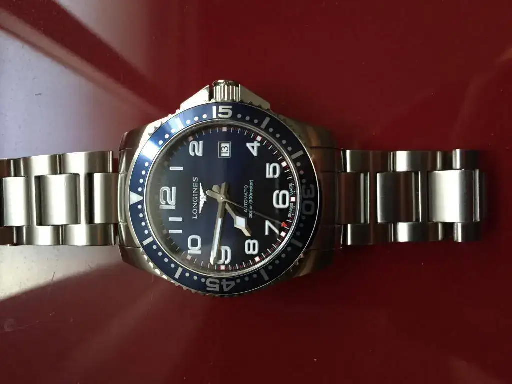 Buenas tardes a todos/as,saco a la venta este Longines Hydroconquest del año 2014(es el nuevo modelo con todos los números y calibre L619 de Longines que es un eta 2892).El reloj esta usado con microrayas en las partes pulidas de la carrura,un arañazo algo mas profundo al lado de la corona(a simple vista no se ve pero a trasluz si se nota)el cristal y el bisel sin marcas,en la zona inferior de las asas tiene algunos arañazos del cambio de correas(no es nada grave ni son profundos pero ahí están).El reloj va con todo lo que trae de fabrica(caja blanca exterior,caja interior símil madera,tarjeta de garantía sellada y fechada,libro de instrucciones Longines y eslabones sobrantes del brazalete de acero).Es un reloj usado pero muy bien de estado general,no tiene ningún golpe ni nada raro.De marcha diaria anda entre los 7/8" día.El precio con envío incluido son de 640 eur,cambios me los plantearía por algún diver de calidad similar y estado similar al mío,en caso de valor superior de tu reloj,al Longines podría aportar un Tissot Seastar powermatic 80 para el cambio(este lo valoraría en 390/400 eur).Un cordial saludo y gracias al foro por ceder el espacio.