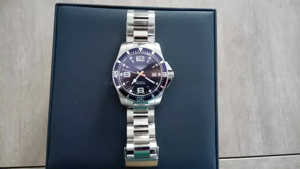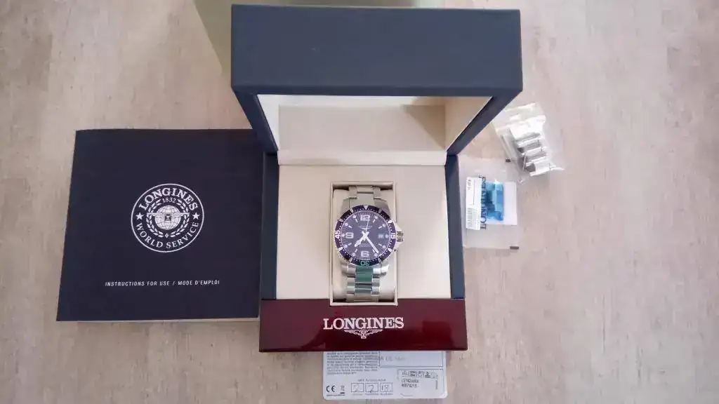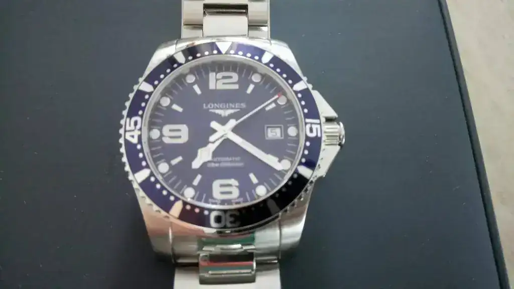 Saco para venta, o cambio, este conocido Longines Hydroconquest azul, adquirido en CO físico nacional el pasado 2 de febrero, con lo que aún le queda mucha garantía por delante. El reloj está en perfecto estado, aunque en estos meses lo he usado con relativa frecuencia, no se le aprecian más que las típicas marcas en el cierre (de apoyarlo en la mesa del trabajo), y alguna que otra en la parte pulida central de los eslabones más cercanos al cierre. Por lo demás está perfecto.