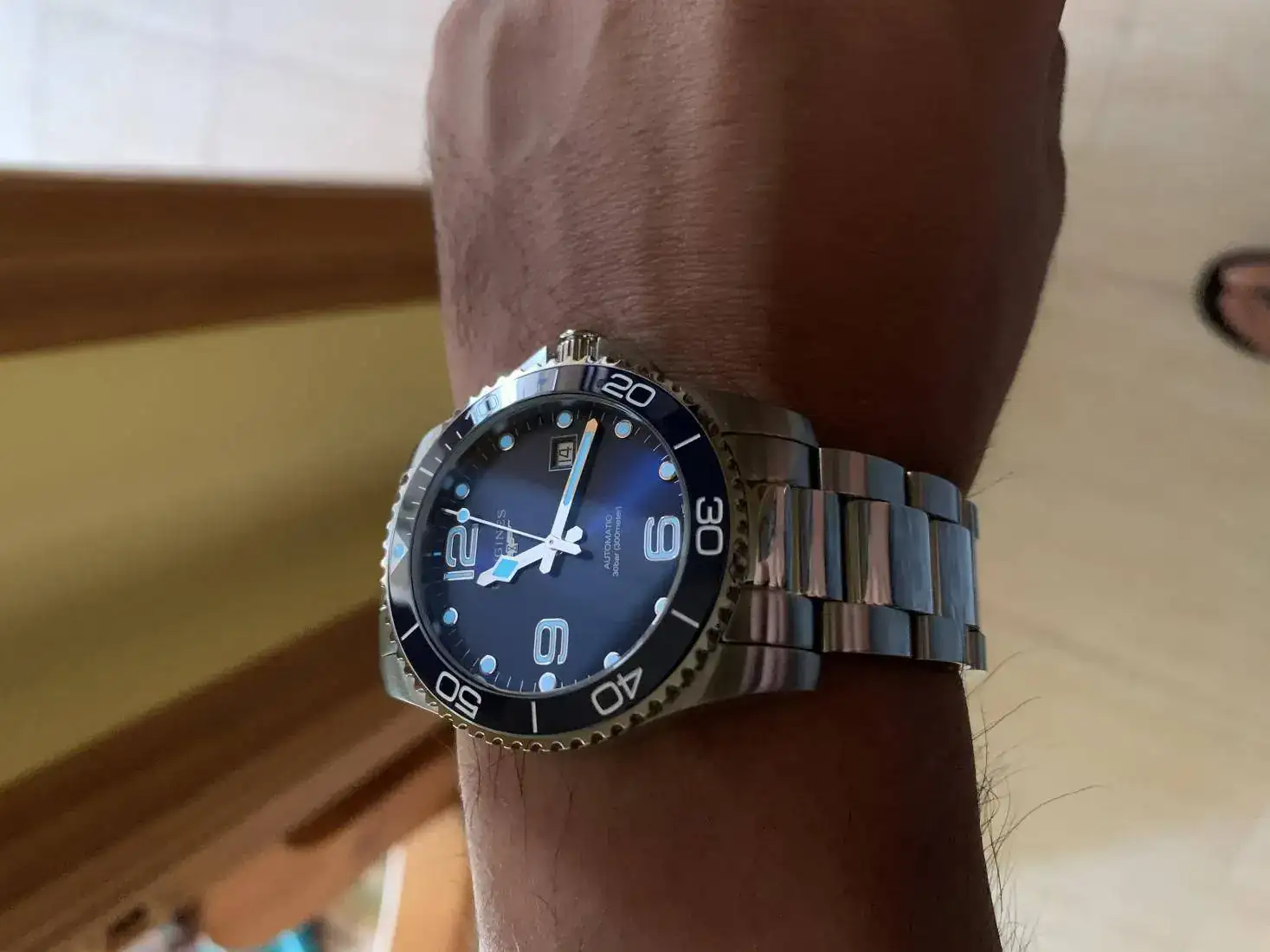 Exacto, no es la edición España, sino el normal. Se ve que no se conoce muy bien esa edición por estos lares, el tono del azul es más claro que el normal, bastante bonito por cierto y el dial es una preciosidad, con su cepillado vertical. Estáis tachando de “horroroso” al hydroconquest estándar.