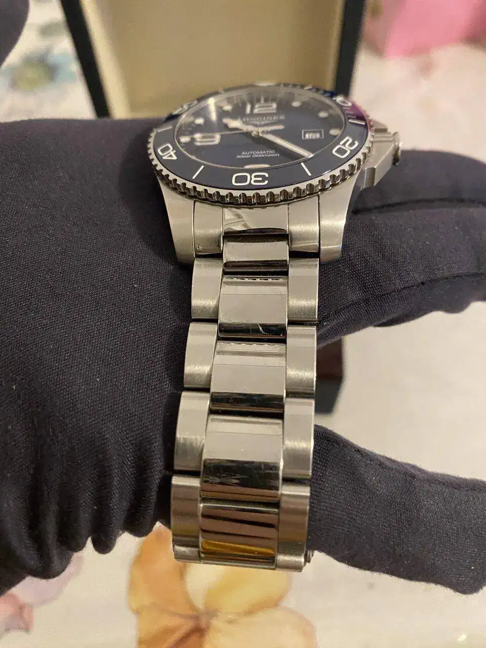 Saco a la venta el conocido por todos Longines Hydroconquest cerámico azul en 43mm. Comprado en enero de 2022 a un forero, se le ha dado un uso moderado y ha mantenido parámetros COSC desde que lo tengo, y en las últimas vacaciones de verano, lo usé durante una semana y solo me adelantó 3 segundos en 8 días. Presenta marcas por el uso, con un pequeño picotazo en el endlink, justo donde la asa inferior izquierda, y algunos arañazos en el armis y cierre, pero la caja está en perfectas condiciones. Sale para dar entrada al modelo de 41mm, ya que al ser muñeca fina(16,5cm), me viene un poco grande, pero ni una queja del reloj. Me lo entregaron solo con el estuche de piel exterior, sin tarjeta de garantía ni manual, y es como lo vendo ahora.