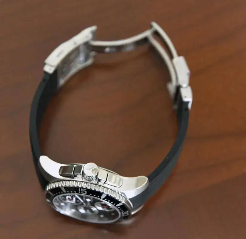 El estado estético del reloj es bueno. Lo he usado combinandolo con otros relojes, así que el uso en estos años ha sido temporal, aunque si es un reloj que me lo he puesto. Tiene las clásicas microrallas, sobre todo en el cierre deployante, en la zona que apoya en la mesa de la oficina. A parte de esto, no tienen daños a destacar.