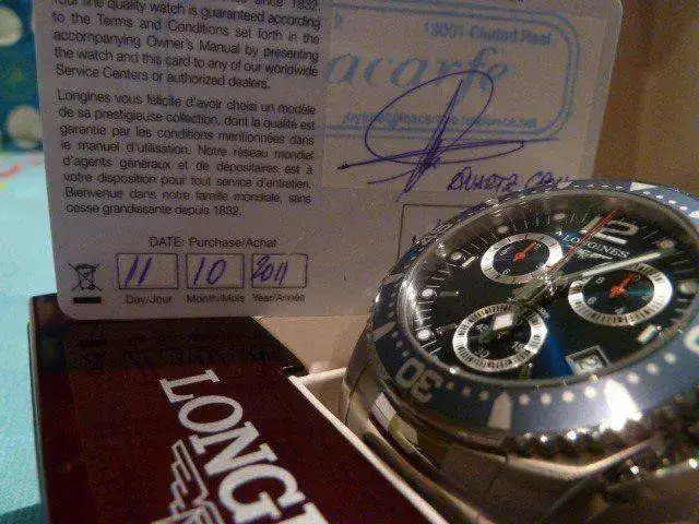 Las caracteristicas son:Calibre de cuarzo longines l541(251.272 eta),impermeable 300m y salto de fecha rapido,tambien tiene el sistema rattrapante para el crono...es espectacular ver a las agujas funcionando...el estado del reloj es muy bueno sin golpes en caja,bisel o armis...microrayas si tiene,se enviaria con toda su dotacion:caja blanca exterior,caja gris interior con carterita blanca simil piel,tarjeta de garantia sellada y fechada(en vigor para 11 meses casi),bueno la unica pega por decirlo de alguna manera es que el armis esta ajustado para una muñeca de 18,5 o 19cm y no tengo eslabones sobrantes...mi precio 585 eur y el envio lo pagaria yo por mrw bag14,aqui van las fotos,un saludo: