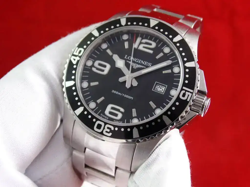 Presentamos un reloj conocido para muchos, porque se trata de un Top Ventas: el LONGINES Hydroconquest, en negro y con su versión de bisel de aluminio. Se trata de un Diver de primer precio, elegante y todo terreno, y encaja muy bien en la muñeca con sus 39 mm de caja.