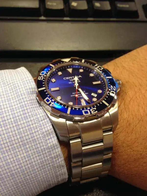 Él no tiene ningún reloj de cierta calidad y le gustan los Diver. El otro modelo para elegir sería el Certina DS Action, el cual no conozco.