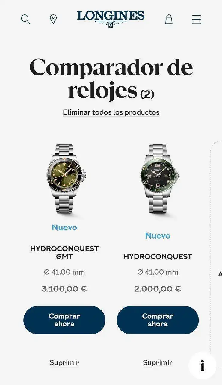 Los modelos son los siguientes, el nuevo negro y bisel verde del hydroconquest que me parece súper elegante y cuando lo he tenido en las manos la verdad que se nota una calidad a su precio, se me ha cruzado el GMT nuevo que el dial ya cambia y me parece una locura, decir que la función GMT no me importa mucho, premio más la estética y me parece insuperable.