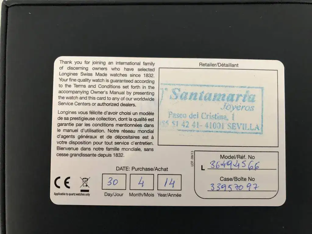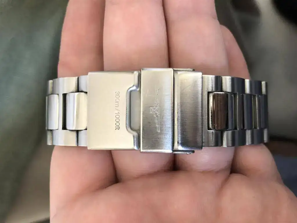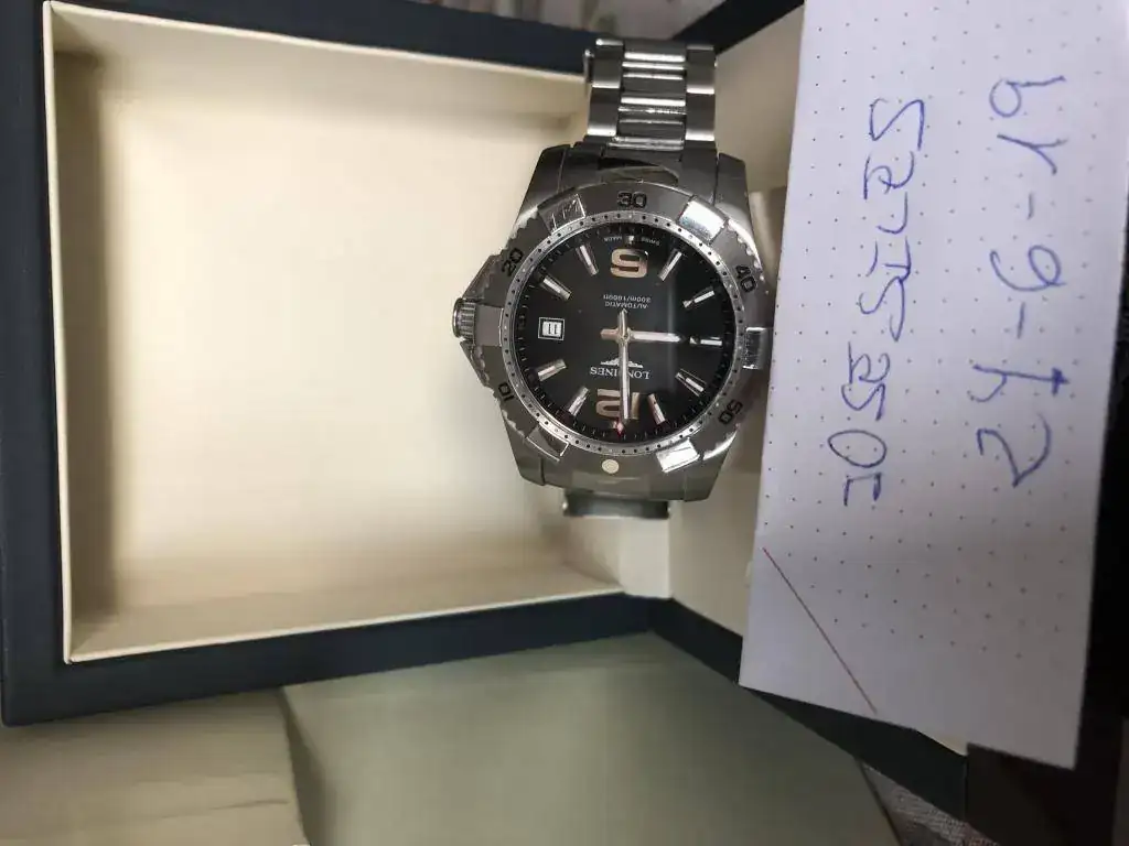 Comprado en la joyería “Santamaría” de Sevilla capital. El reloj se encuentra en muy buen estado, tiene las típicas señales de uso pero nada destacable. Es sumergible a 300 metros y, por lo tanto, cuenta con todas las características que todo buen diver debe tener: tiene corona roscada para hacerlo más estanco al agua, índices luminiscentes visibles en la oscuridad (también cuando realizamos submarinismo a partir de profundidades ya respetables), bisel unidireccional para medir los minutos de tiempo que llevas debajo del agua (al ser unidireccional nunca te indicará que llevas menos tiempo sumergido del que realmente llevas), extensible en el armis para traje de buceo, tapa trasera roscada al igual que la corona como dije anteriormente. El broche del armis cuenta con microajuste para que se adapte perfectamente a la muñeca, también cuenta con doble cierre de seguridad. Aporto eslabones extras para que el armis/brazalete se pueda ajustar a cualquier muñeca. El reloj se entrega con todo el set: caja exterior de cartón beige, caja interior de piel, instrucciones y tarjeta de garantía ya agotada. Tiene función de cambio de fecha rápido (la fecha se cambia a las 24 horas de forma rápida). Por último, decir que el reloj cuenta con un diámetro de 41mm sin contar la corona. Yo creo que no se me olvida nada aunque siempre poder contestar dudas a quien esté interesado. El precio lo fijo en 565€ con porte incluido sin asegurar.