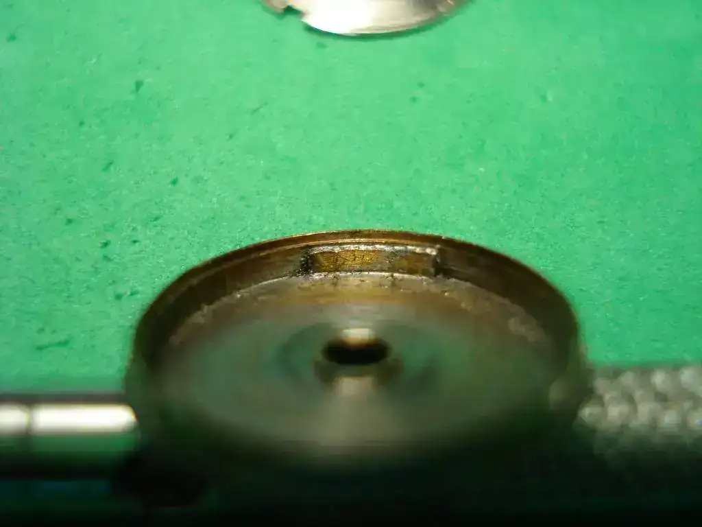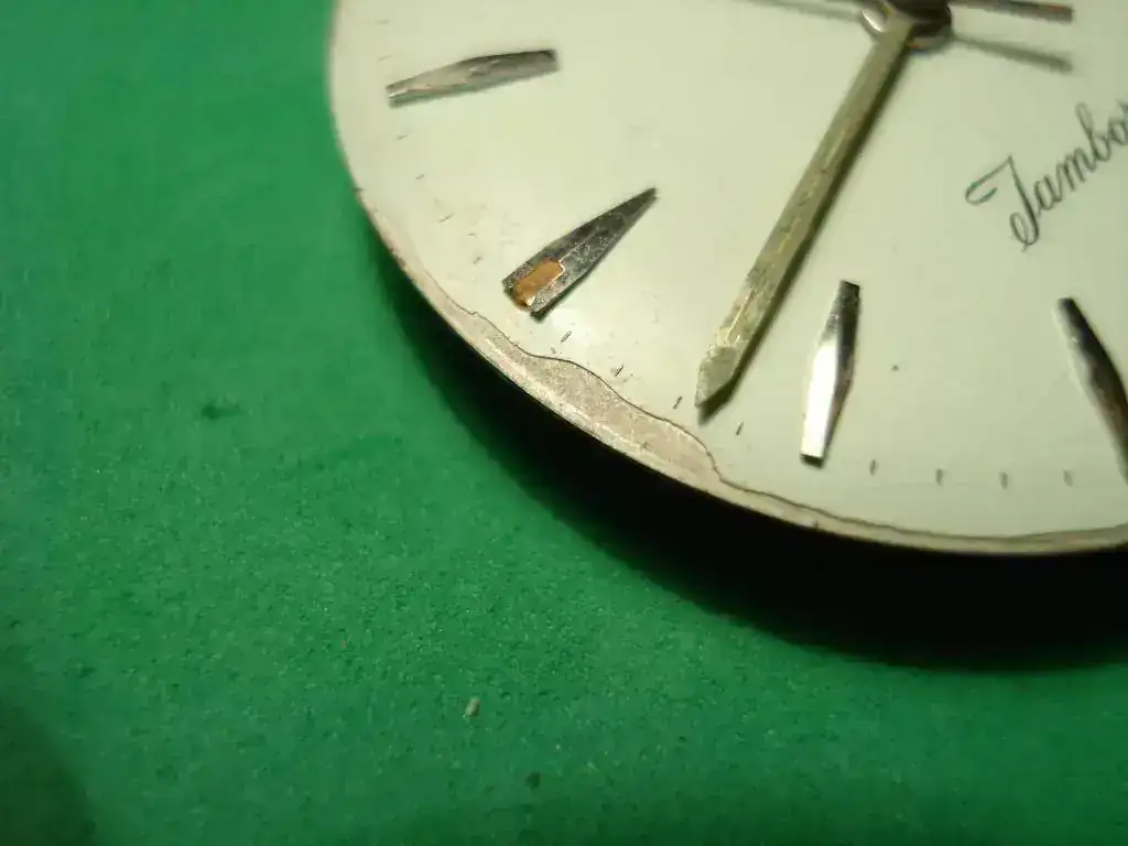 .... Y el material del esmalte del dial, que no sé qué es; parece como parecido a la porcelana de los de bolsillo, descascarillada por los extremos y agrieteada. Ésto último mejoró bastante al lavarla, pero en el lavado se fue el tritio....