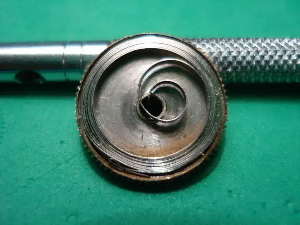 Venía que no cargaba cuerda correctamente, ya os contaré porqué. La aguja minutera no es la original, la trotadora tampoco, ni la corona... En resumen; era un "remendao", y en algunas cosas, horriblemente hecho...
