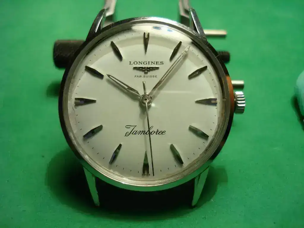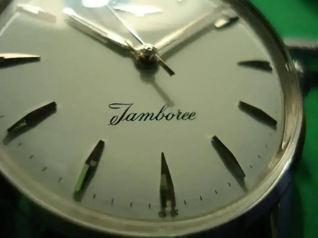 JAMBOREE Nombre acuñado por Baden-Powell, fundador de Scouting. De la palabra swahili jambo que significa "hola". "Cualquiera que sea el origen de esta palabra, tendrá un significado bastante distinto para la mayoría de la gente de este año (1920). Él se asociará para ellos con la idea de la mayor reunión de niños que nunca se ha celebrado. "Jamboree" evoca un alegre encuentro de chicos con un gran sombrero y una amplia sonrisa, con la camisa, los pantalones cortos, el pañuelo y el bastón. Son ellos los que cuentan en un jamboree. Un jamboree es una reunión de exploradores. Calibre 280 LONGINES Jamboree 1959 muestra el LONGINES conmemorativo World Jamboree de 1959. Es el décimo explorador jamboree, el primero organizado en Asia.