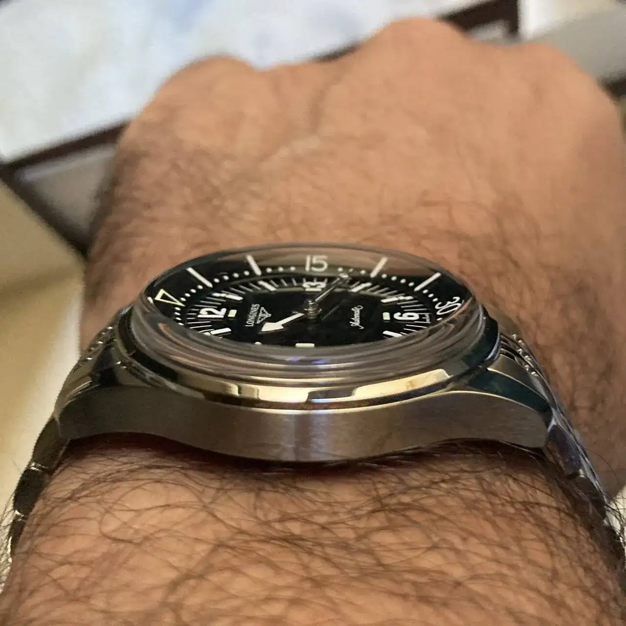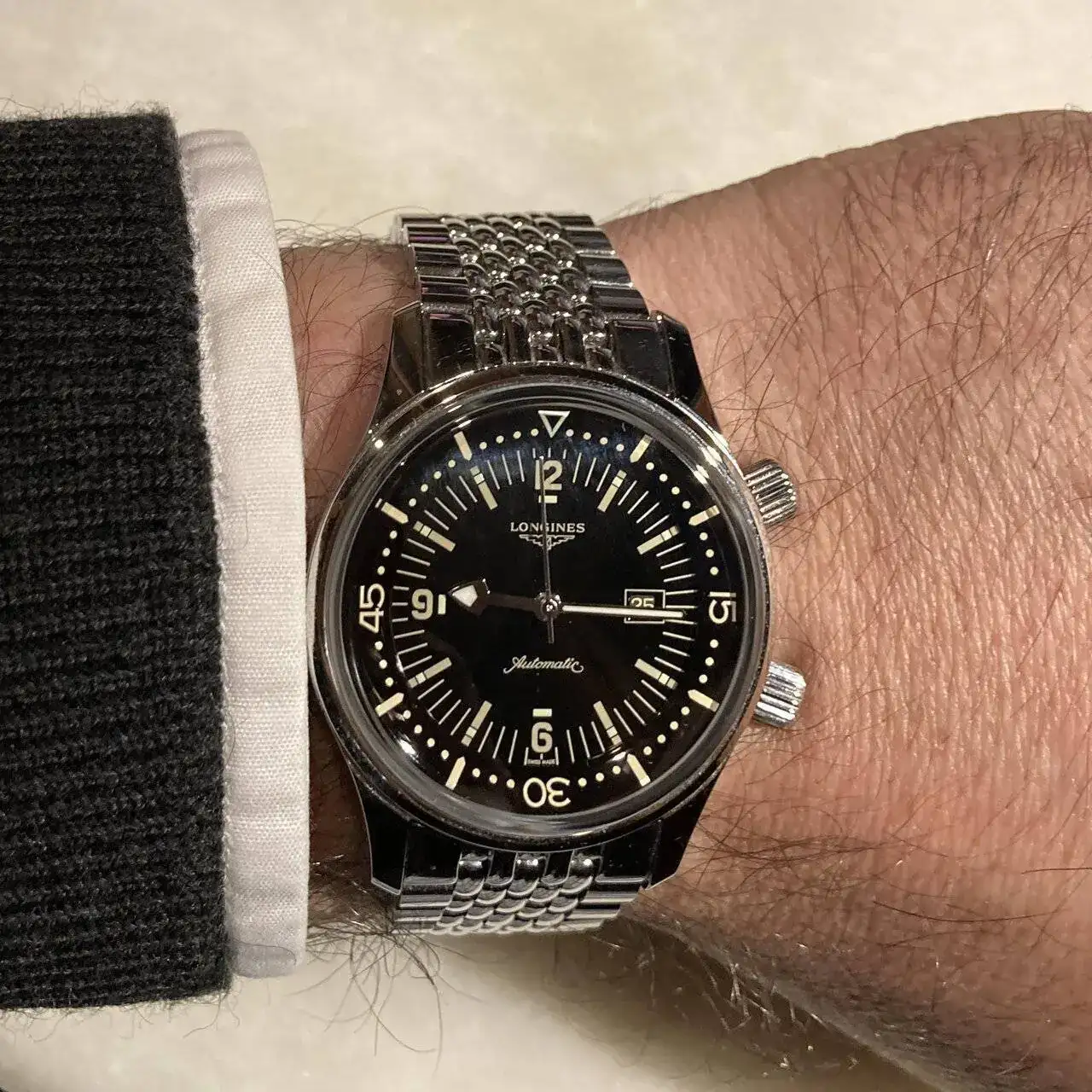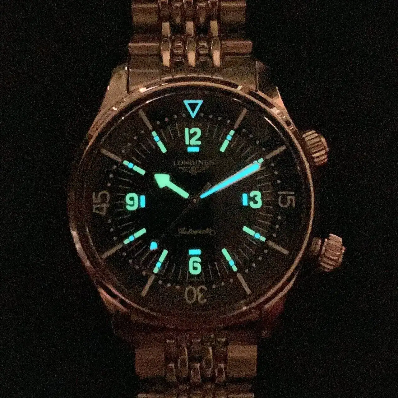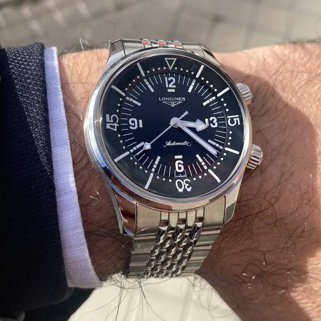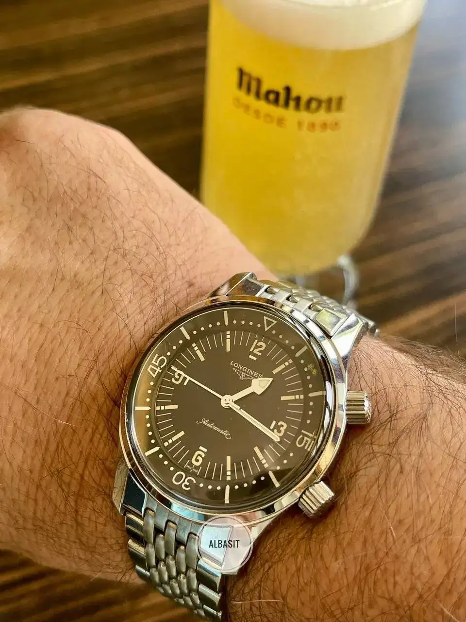 Una parte de mí (la clásica y tradicionalista) hubiese preferido que redimensionaran el 42mm a 38 ó 39 mm, manteniendo su estética, pulidos, esfera, y en todo caso añadir alguna de estas mejoras: calibre, brazalete, sin fecha... Sin embargo, resultado de la reinterpretación realizada, me parece que Longines ha obtenido un reloj muy acertado que sigue homenajeando el modelo original, y más fácil de llevar con un estilo más informal, más CUCO (más práctico también para mi, dado que se ha impuesto la vestimenta casual en mi oficina y cada vez uso menos el traje-corbata...). Estoy encantado, llevo varios días usándolo sin que me cueste esfuerzo repetir reloj (raro en mí, que necesito cambiar de reloj a veces incluso a lo largo del día), y lo encuentro muy cómodo, muy legible, preciso, equilibrado y bello... Entra en el grupo de favoritos de mi colección, se queda como el Legend Diver que debo tener.