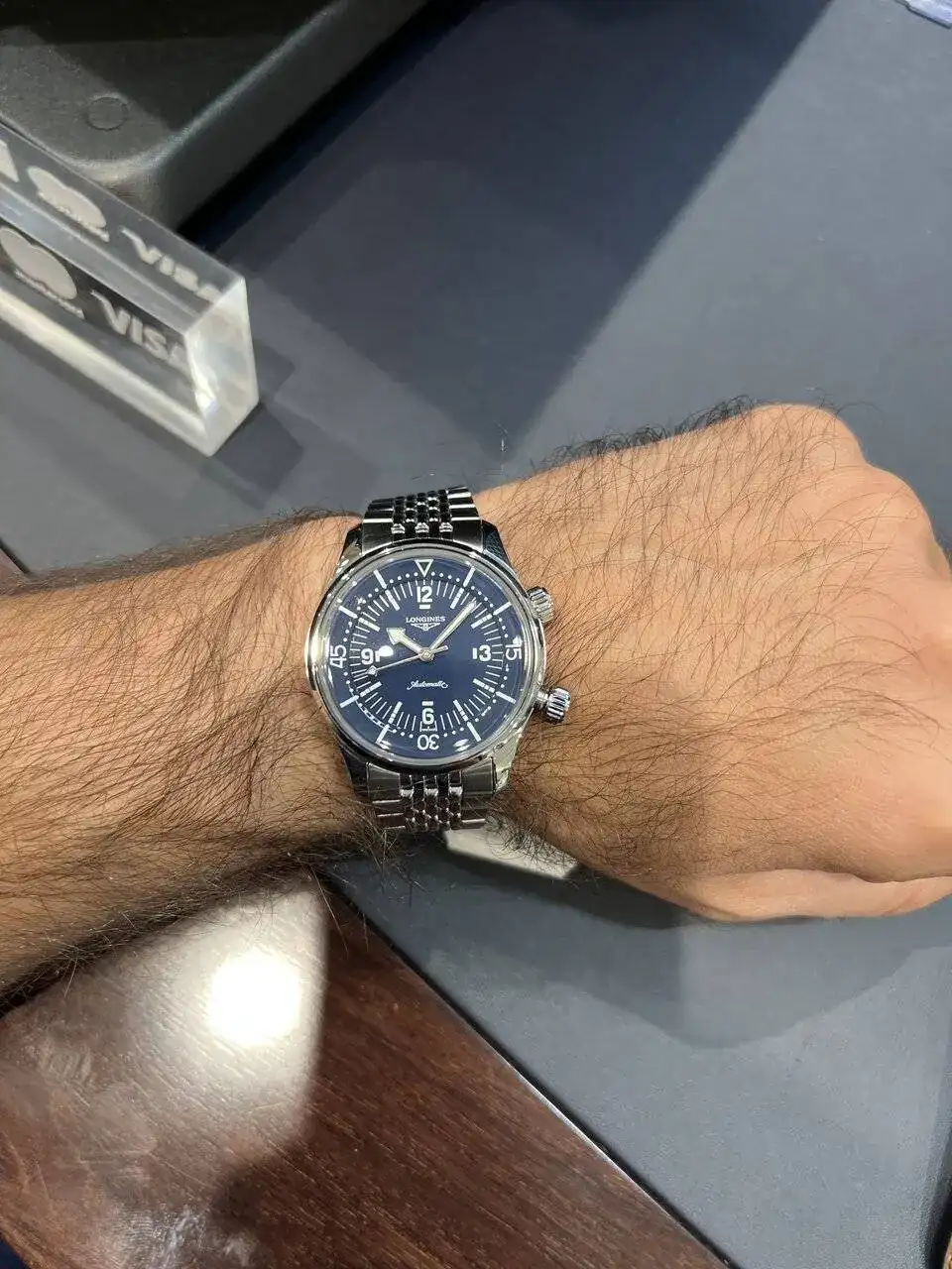 Pues en azul no está tan mal como imaginaba, a tenor de las impresiones del Boss en la Maison Longines… por cierto, ¿el lug-to-lug es más compacto, o sólo lo parece?