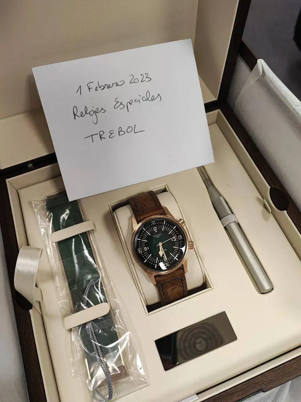 Vendo este Longines Legend Diver Bronce con 2 puestas. Ninguna marca, ni roce, ni pelillo, ni nada de nada. Con las 2 correas que trae de dotacion a estrenar, sin ninguna puesta, ninguna marca, ningún roce ni doblez, las estrenas tu.