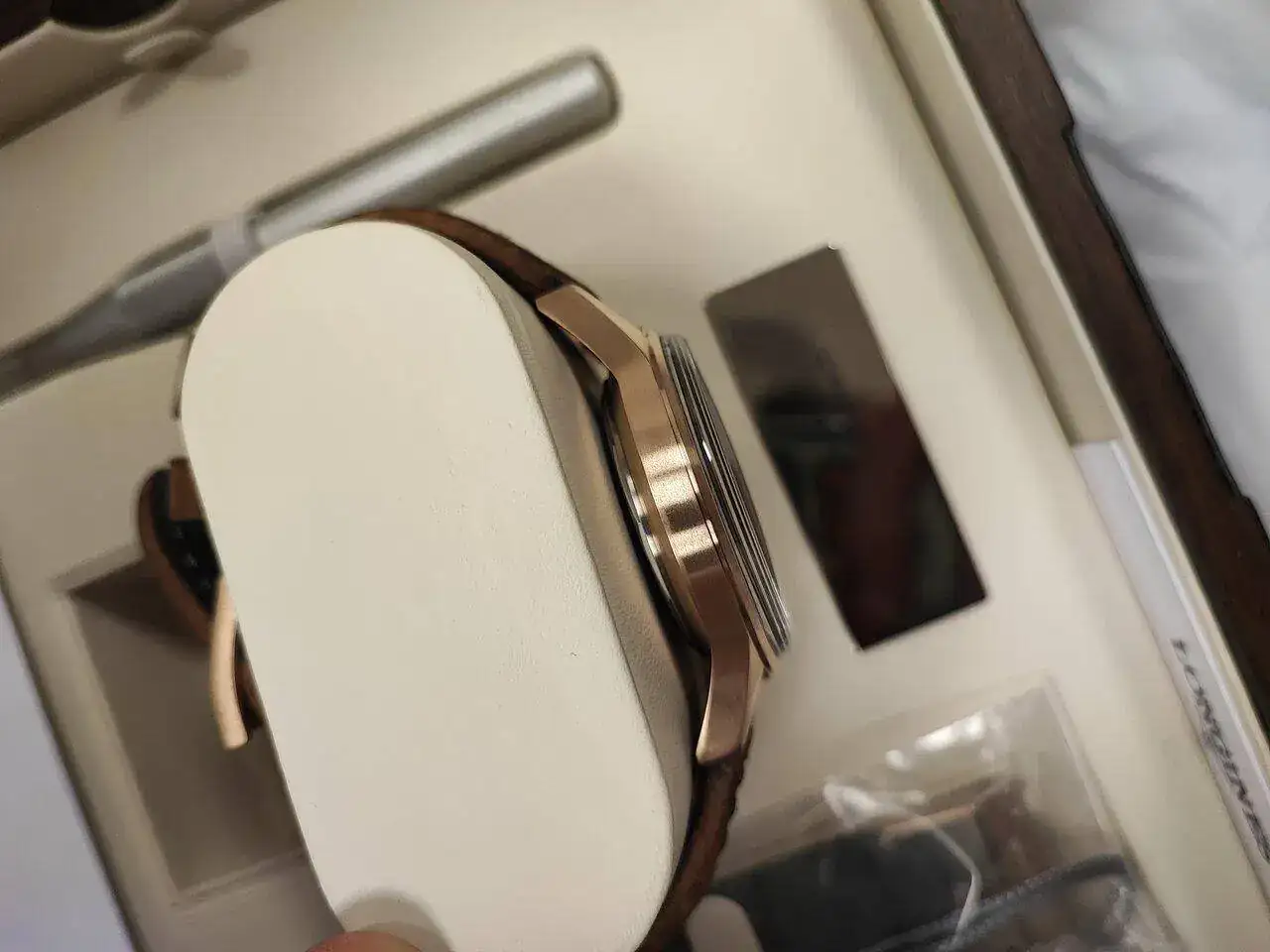 Es como si lo estrenas pero con un buen descuento. Lo que ves en la web de Longines es lo que vas a recibir. No incluyo la correa de las fotos que es con la que lo he estrenado.