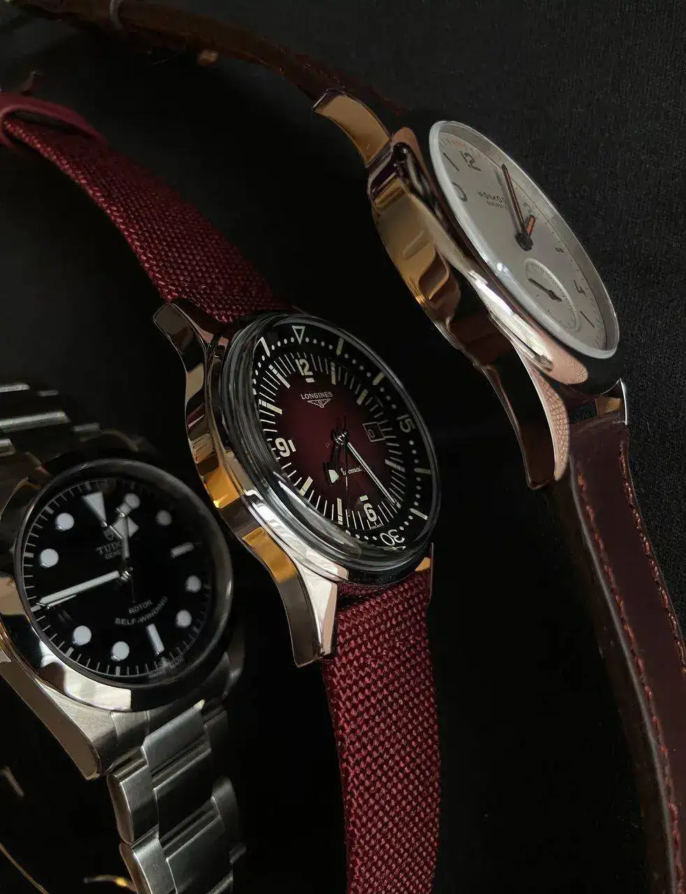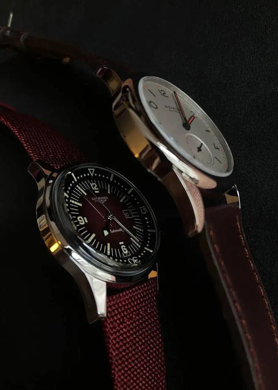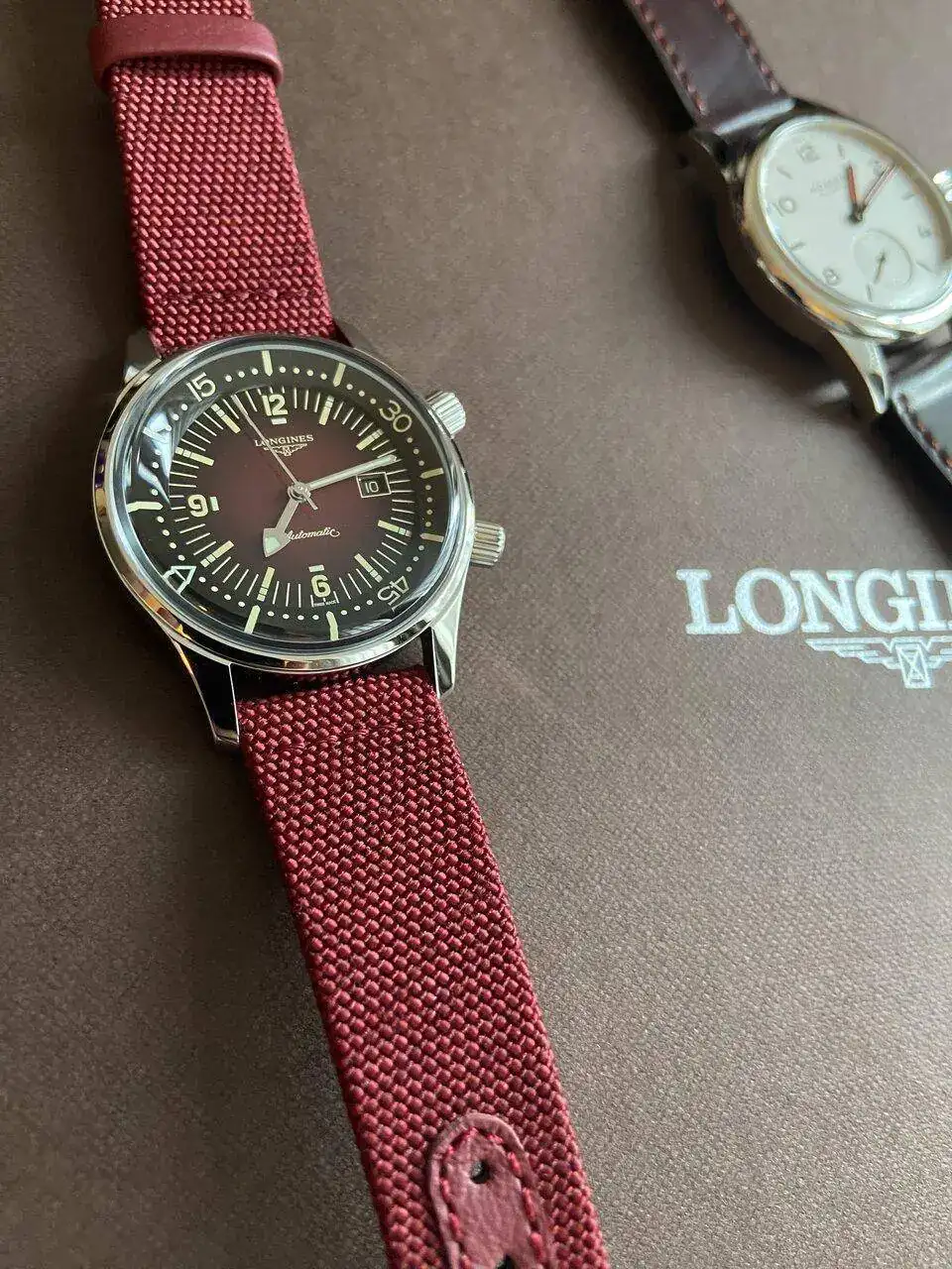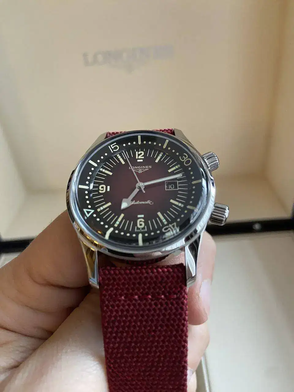 El color en vivo es precioso, un burdeos muy discreto, en condiciones de poca luz llega a empastar con el negro del bisel de forma muy elegante.