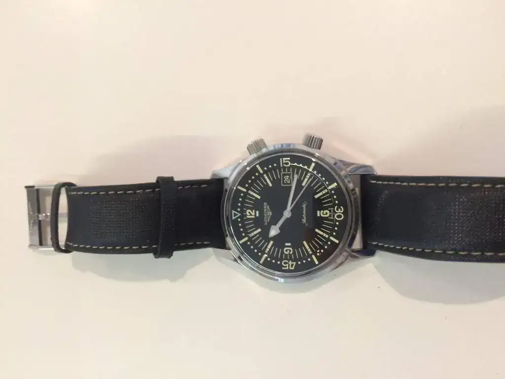 Pongo a la venta este gran reloj Longines, el Legend Diver Date. Está en perfecto estado de funcionamiento y con poco uso: no tiene marcas, ni siquiera de cambio de correas (jamás le mudé de pantalones).
