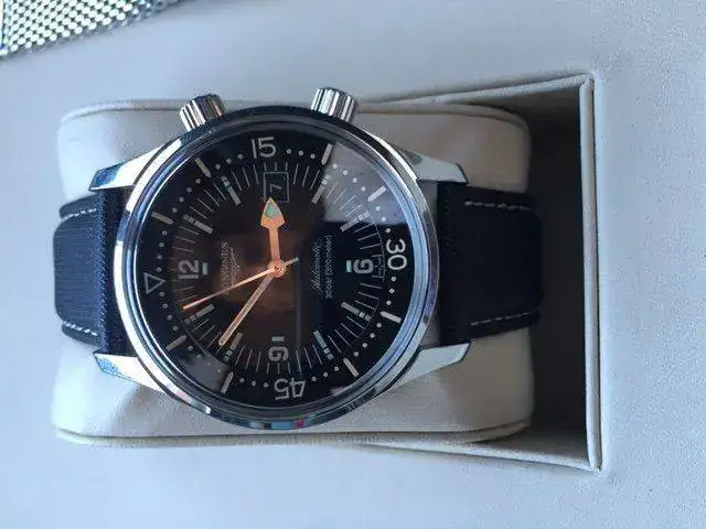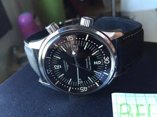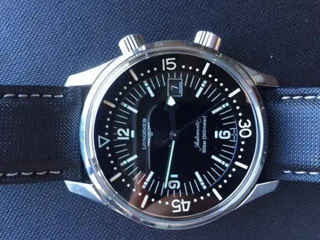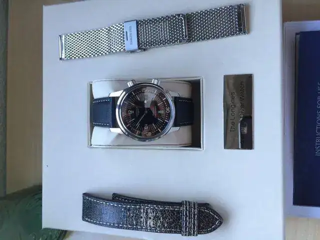 Vendo este Longines Legend Diver Date por la llegada de otra pieza. El reloj es de enero de 2014 y esta practicamente de reestreno, y acaba de tarminarsele la garantia.Soy incapaz de encontrar ningun tipo de marca. El reloj es de 42 MM con calibre 633 de longines. El reloj tiene la correa original practicamente a estrenar ya que siempre he unilizado o la nato o la bomber jacket. El reloj se encuentra completo del dotacion con todas sus cajas y papeles incluso alguno de los libro todavia se encuentra precintado todavia