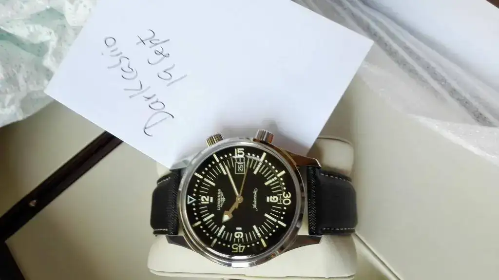 Regalo de una NATO que le queda muy bien. La correa original está al 99%, yo me lo puse con la NATO y sospecho que el propietario anterior o lo usó poco o no usó la correa original.