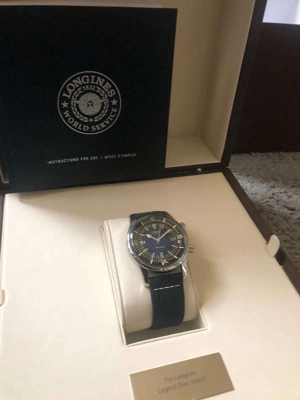 Viene completo , con las tarjetas selladas, está en un estado magnífico , la verdad. En función de la luz, la incidencia sobre el dial y las manecillas cambia totalmente, como podéis observar, en las fotos.