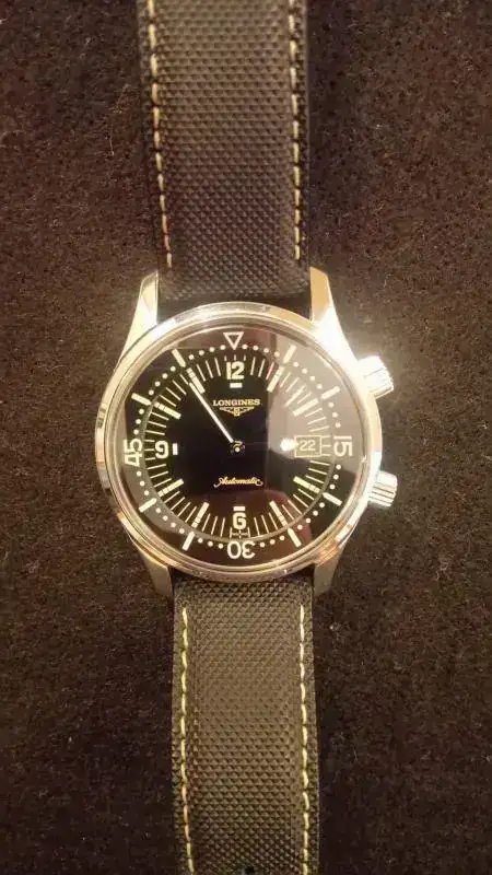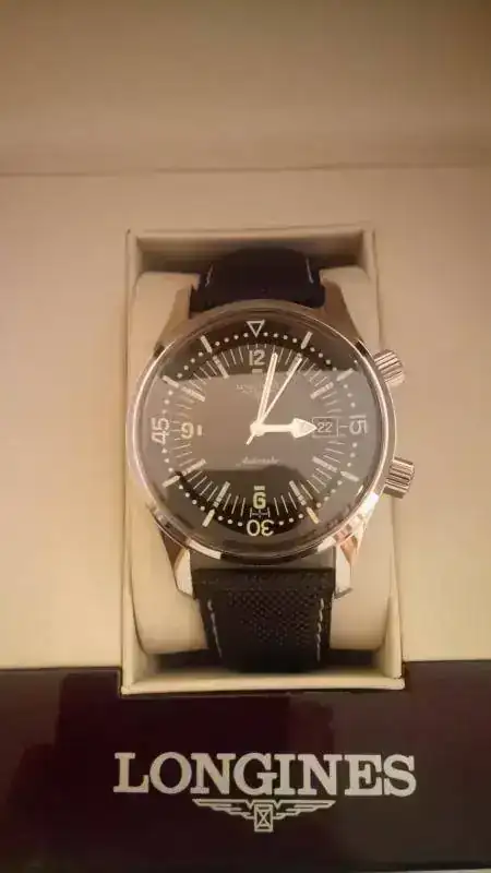 Antes de nada, pedir disculpas por la calidad de las fotos, porque entre que mi móvil es lo que es y el reloj, al tener la caja toda pulida, saca brillos por todos lados. Bueno, al lío. Saco a la venta este conocido Longines Legend Diver, aún en garantía, ya que fue comprado en CO nacional en abril del año pasado. Decir que lo he usado con cierta regularidad, pero está en muy buen estado, aunque tiene algunos arañazos superficiales en las asas (es lo que tienen los pulidos) y algunas marquitas poco visibles. Quizás lo más grave es un pequeño "picotazo" en el anillo que rodea el cristal, a la altura de las 2 (el cristal está perfecto), aunque es difícil de de ver y de sacar en foto, pero si se pasa la uña se nota (lo aviso por si acaso). También tiene algunos arañazos un poco más visibles en la zona posterior de una de las asas, fruto de los cambios de correa. La correa original también la he usado regularmente, aunque no está deteriorada, tiene tres agujeros extra que le hice para adptarla a mi muñeca. De todas formas, el reloj está en un estado general muy bueno, y sin marcas muy visibles o reseñables, salvo los detalles que he comentado.