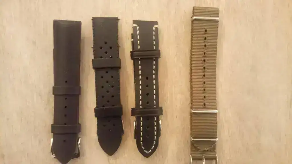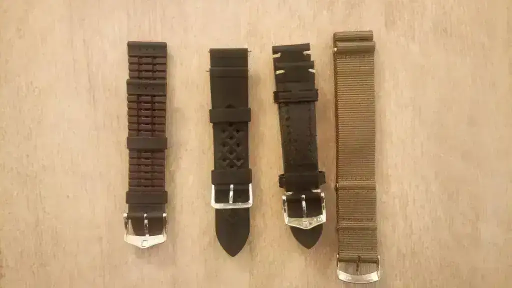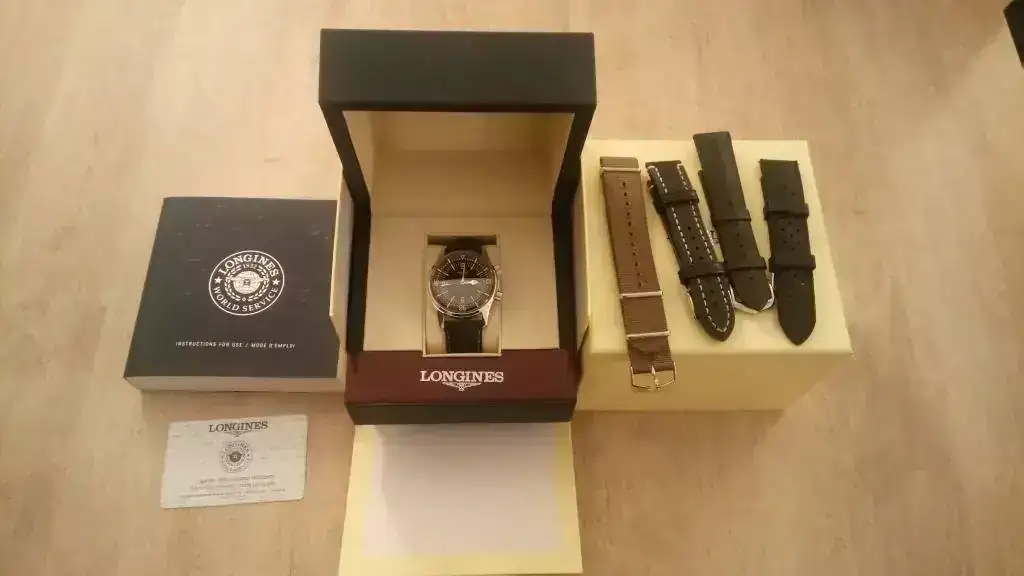 Decir que no tengo la caja original de madera, ni el libreto que la acompaña, ya que donde lo compré no disponían de ella, y me dieron una genérica Longines. Por ello, para compensarlo, incluyo varias correas que le quedan genial al reloj: una Hirsch Arne con el exterior de piel que imita la tela de barco y el interior de caucho (a estrenar), una Hirsch Liberty negra (a estrenar), un caucho tipo Tropic (usado, pero en perfecto estado) y una nato verde caqui (a estrenar).