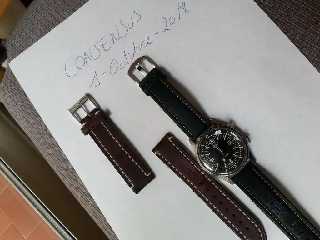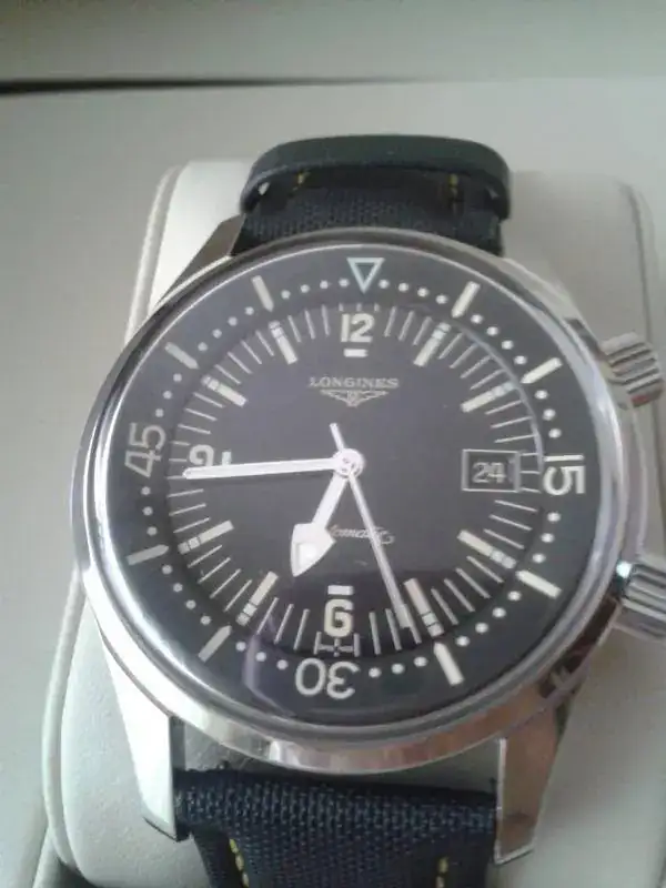 Hola compañeros pongo a la venta mi longines legend diver date, un reloj de sobra conocido, está en unas condiciones estupendas, tanto de marcha como de conservación, francamente yo no le veo arañazos por ningún lado, tiene pocas puestas, incluyo dos correas más de estupenda calidad: una de cuero artesana marrón y otra de carbono negra con pespuntes amarillos que le sienta muy bien, al igual que la de cuero que que es a la que le he puesto la hebilla original, la correa original también la incluyo por supuesto y nunca ha sido puesta por lo que está nueva. total 3 correas.