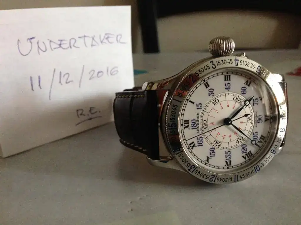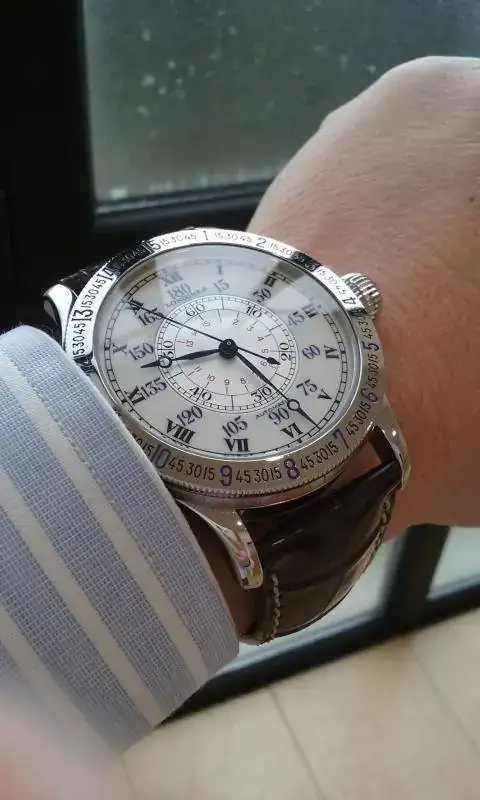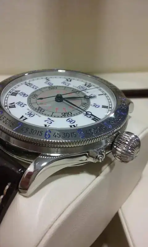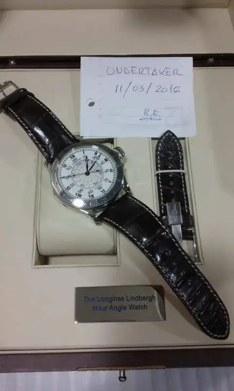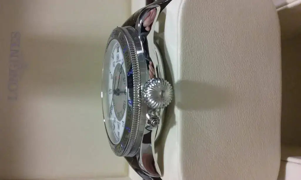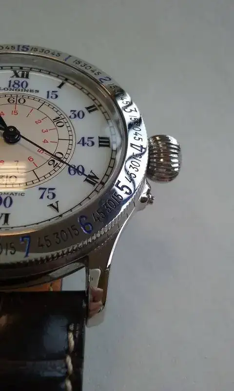 Saco a la venta este histórico y descatalogado Longines, considerado el primer flieger de la historia por ser el modelo que llevaba puesto el piloto que hizo la primera travesía transatlántica en avión y que da nombre a este modelo de Longines, reedición del reloj diseñado para el piloto americano Charles Lindbergh en 1931. El estado es de reestreno, marcha en +1 sg./día, esfera central giratoria con la corona sacada en posición intermedia.