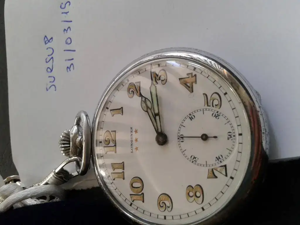 Saco a la venta este Longines de bolsillo de los años 30. Lo presenté en el foro y los expertos me dijeron que parece ser todo original, incluyendo las agujas, aunque debieron ser relumeadas (se puede quitar). La esfera de porcelana es preciosa y está muy bien conservada. Funciona correctamente. El precio: sólo 185 euros con envio incluido. Para cambios, sólo busco bellmatic en buen estado.