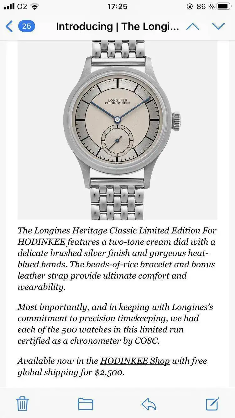 Pienso exactamente lo mismo.No entiendo estas colaboraciones de marcas históricas con páginas especializadas... de verdad Longines necesita de Hodinkee para vender más relojes? Que plus le aporta al posible comprador una edición limitada Hodinkee?