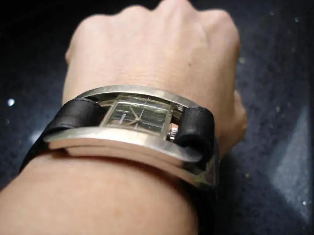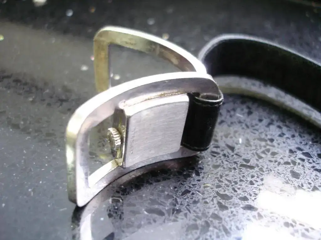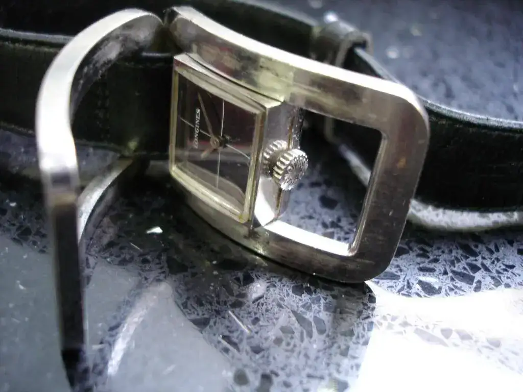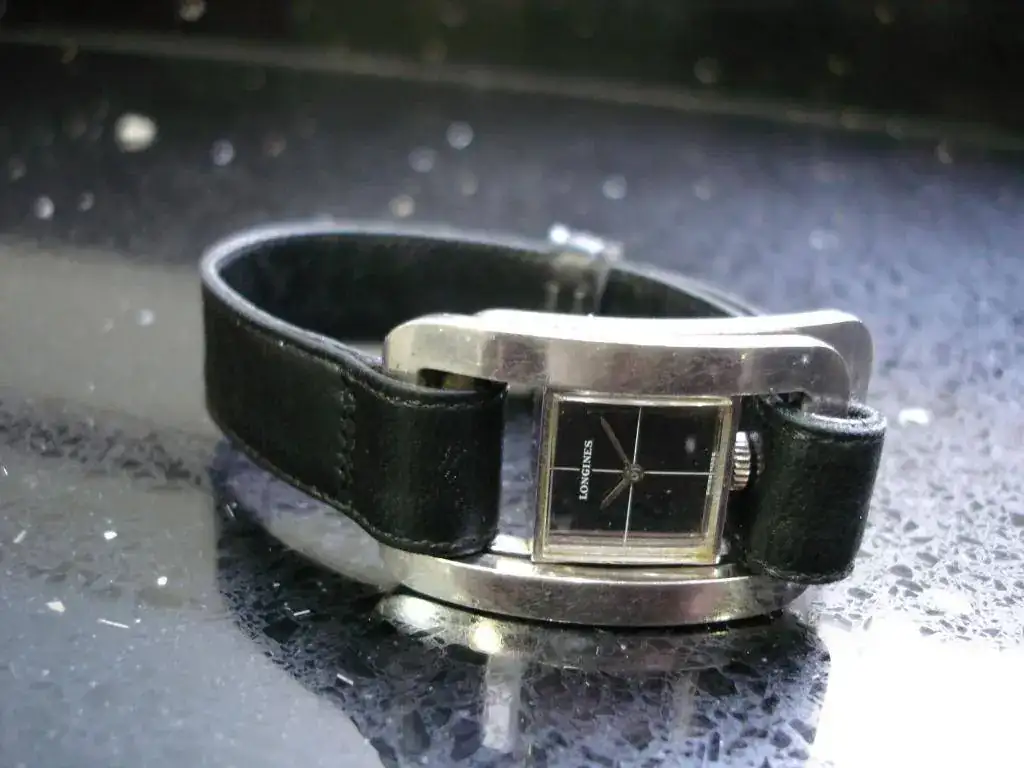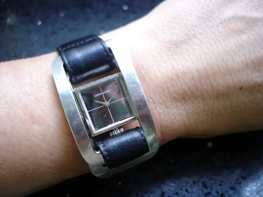 Tiene una elegante esfera negra, con el único adorno de un hair cross atravesándola. Dos sencillas agujas, sin segundero. La caja, siguiendo las indicaciones que la Longines dio al diseñador, recuerda claramente a una hebilla de cinturón; está realizada enteramente en plata 0,925 y mide 26mm de ancho por 40,5mm de largo, con lo cual viste muy bien cualquier muñeca.