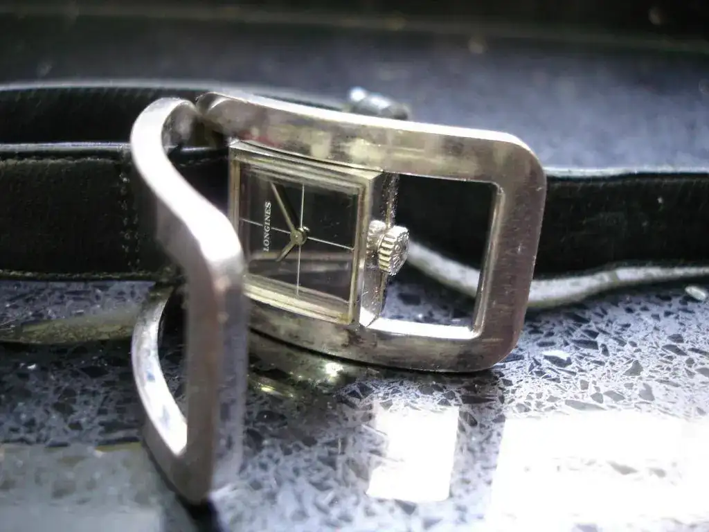 En 1973 Longines encarga a Manzon la creación de una línea de relojes singular, que se desmarque de sus colecciones clásicas, inspirados en las hebillas de los cinturones. La idea era presentar esta colección en la feria de Basilea de ese año. Y estas son las 20 variantes, una de ellas de bolsillo, que diseñó Manzon como respuesta al encargo