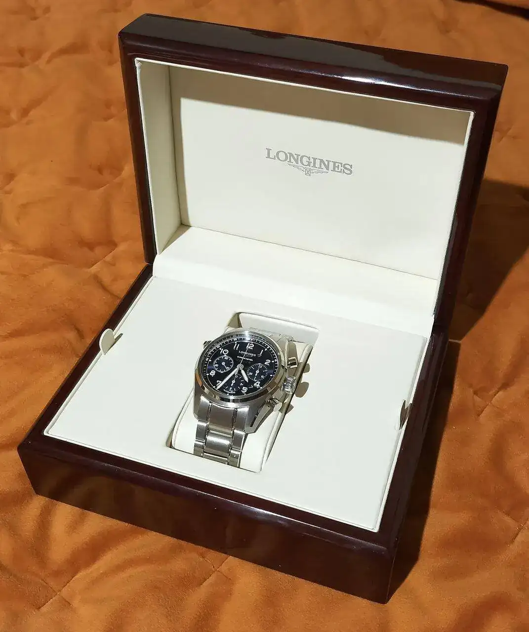 Entonces paseando por un centro comercial para otras cosas, me dije de dar una vuelta por la zona de relojes para sacar fotos para mi hilo escaparates. Mal hecho, porque allí vi la presa. Un cronógrafo, Longines, y precioso (para mí) 😘🥰😍. Volví a casa sin él para informarme. Y cuanto más lo hacía, más me gustaba por características técnicas. Así que a los tres días volví y me lo llevé.