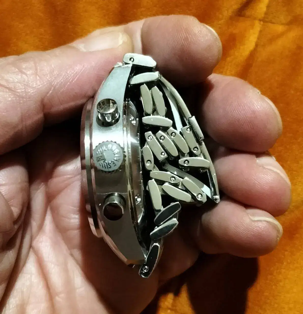 Los pulsadores son una delicia, y darle cuerda un placer. Fue mi reloj de diario durante casi dos años, relegando al resto al olvido salvo ocasiones en las que no quería dañarlo o tenía que usar camisa de puño prieto.