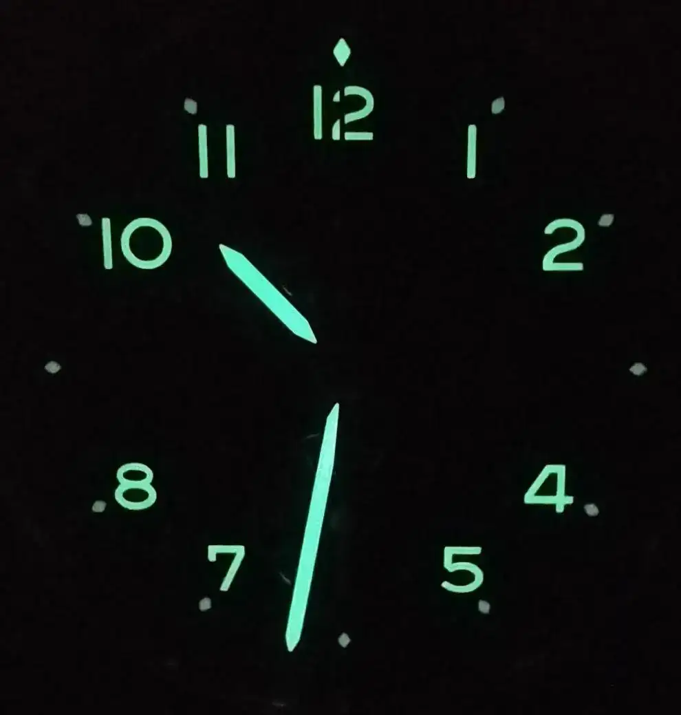 Otra cosa que noto en los reflejos de la luz radiales en el dial, es cierta curvatura.