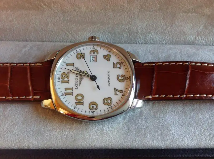 La correa que lleva es la original Longines de cocodrilo auténtico, sin uso (la correa la estrena el comprador)
