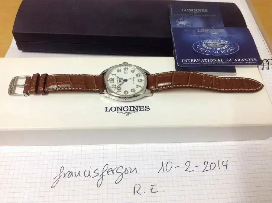 La correa que lleva es la original Longines de cocodrilo auténtico, sin uso (la correa prácticamente la estrena el comprador)