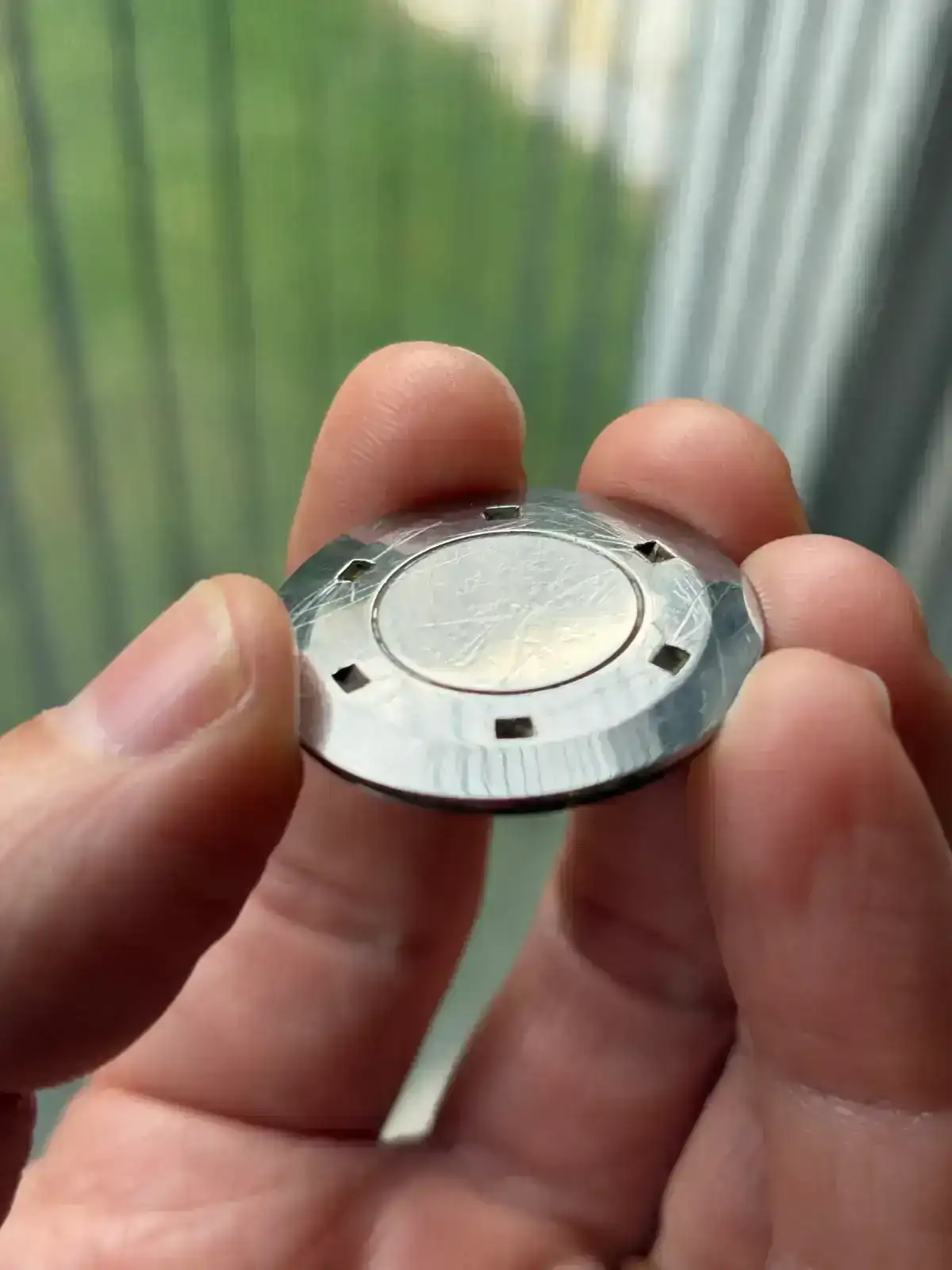 En cambio, en los modelos del avión supersónico la tapa trasera presenta una construcción distinta: además de las seis hendiduras para la herramienta, incorpora un círculo o disco central claramente diferenciado del aro exterior. Este disco interior forma parte del diseño de la tapa y permite reconocer el modelo incluso cuando el logotipo o el grabado original se encuentra muy desgastado o prácticamente borrado por el uso o el pulido