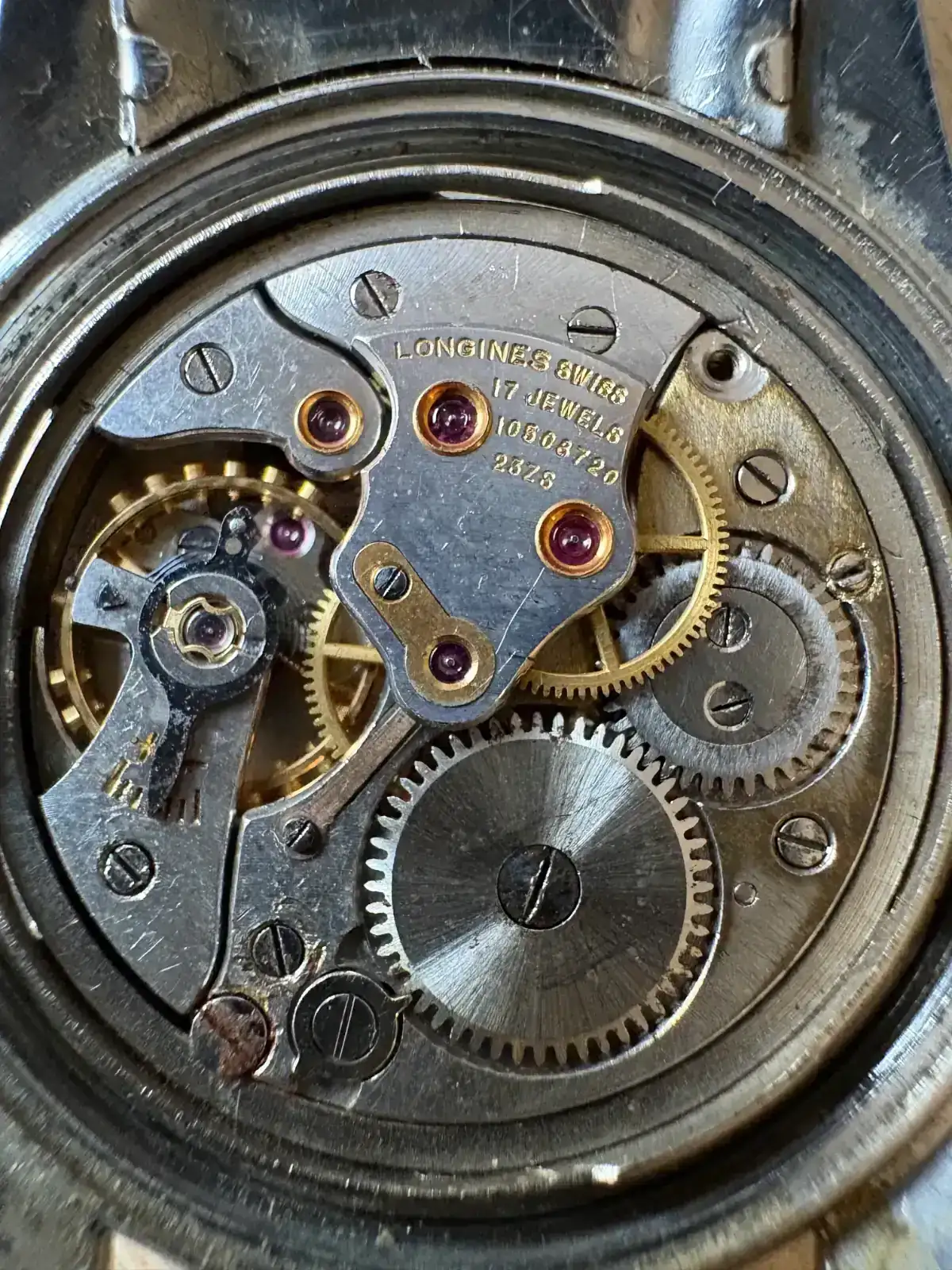 Incluso el mio, por número de serie, es de finales del 55 (mátame, Longines! 😬). La lógica nos hace pensar que el calibre de ese reloj (23ZS) se fabricó unos meses antes de introducirlo en el reloj en el 56. Hay que recordar que el reloj que nos ocupa fue lanzado en 1956.