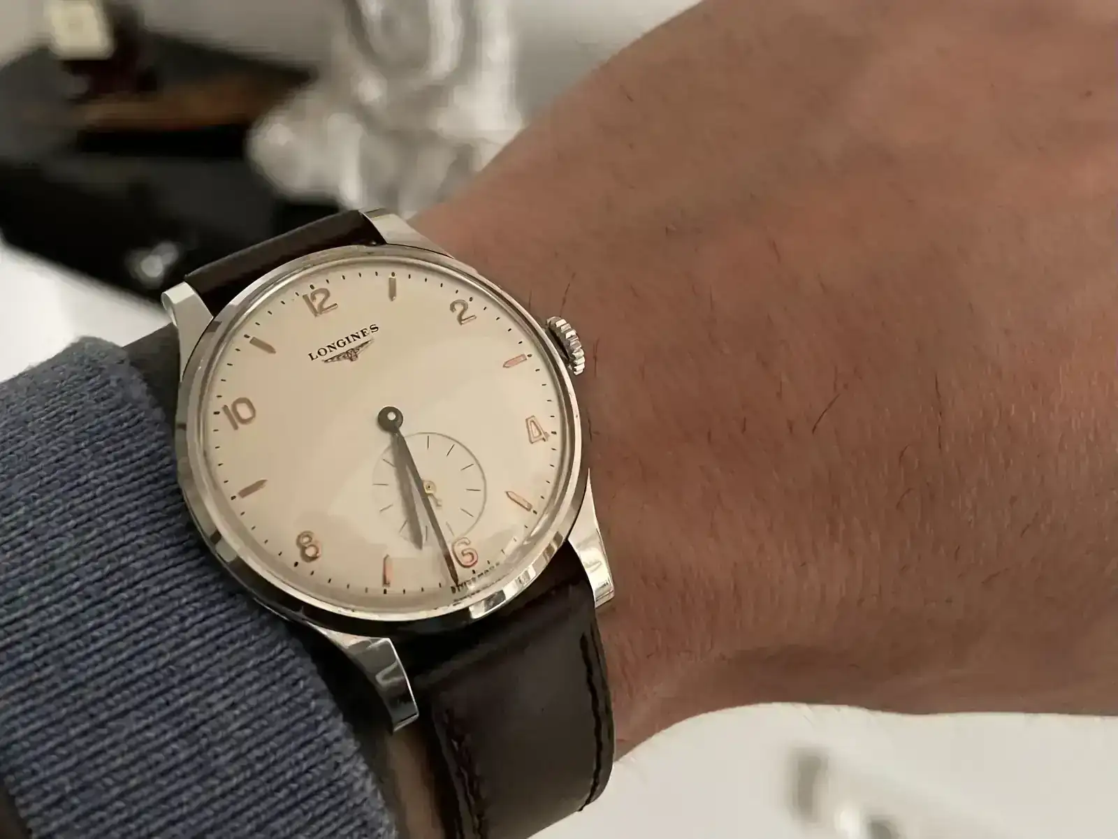 Es un longines de 1951 con el calibre 12,68z de 37mm, lo que en aquella época se denominaba jumbome encanta! que tamaño tiene? modelo? otro gran homenaje como el compi