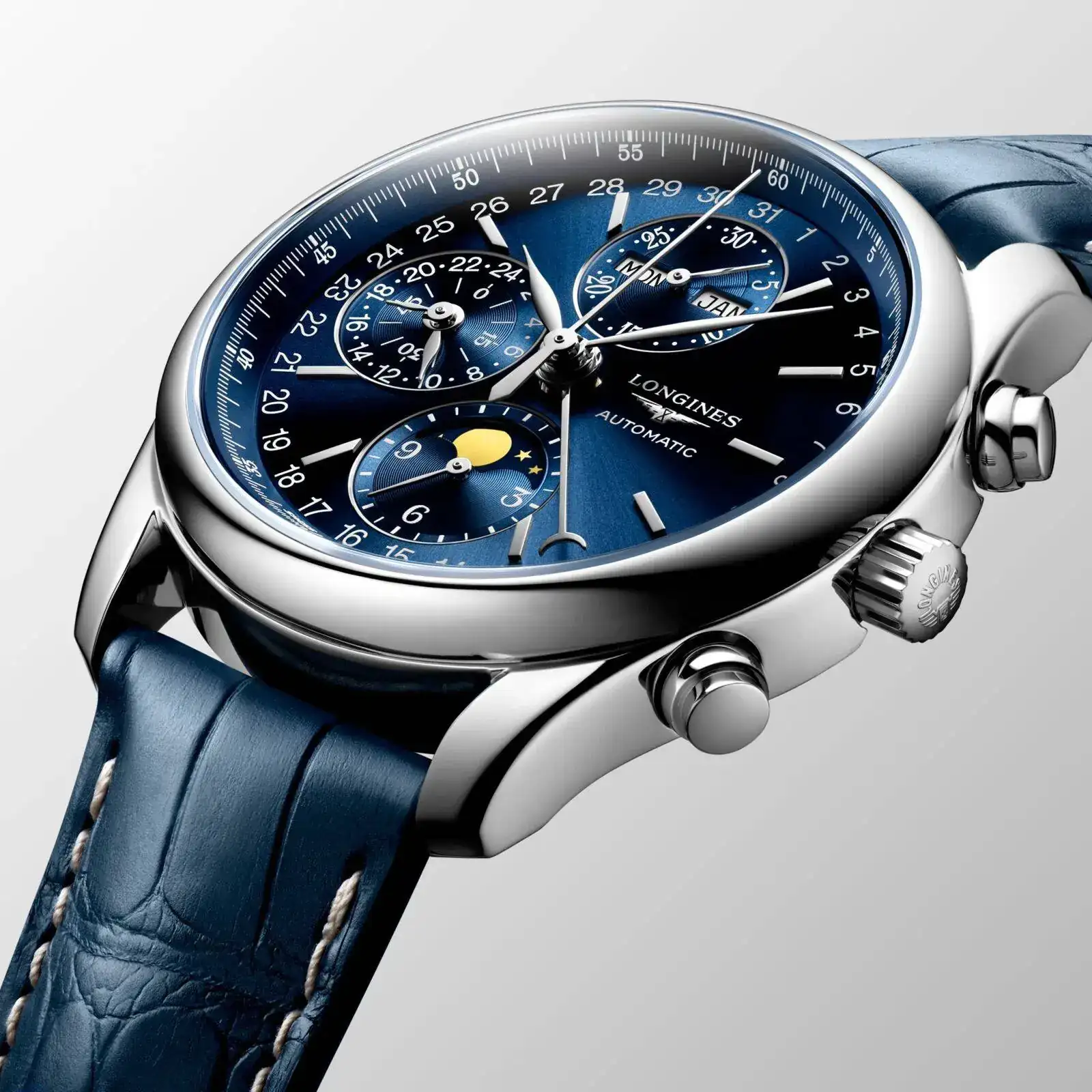 Opino que es un reloj de una gran marca con historia, que actualmente tiene muy buena relacion precio calidad. Esta colección es bien clásica y atemporal, vas a tener un reloj de tamaño perfecto con 40mm, un calibre automático basado en valjoux 7751 que reúne muchas de las complicaciones que a todos nos gustaría tener (día y fecha, mes, fase lunar, cronografo con small seconds). Estéticamente va en gustos, a algunos no le gustará el texturado o les parecerá demasiado recargado el cuadrante. Tiene mucha información el dial, pero todo tiene su función y me parece una pieza muy elegante, una joya de Longines que pasaran años y seguirá totalmente vigente. Saludos.