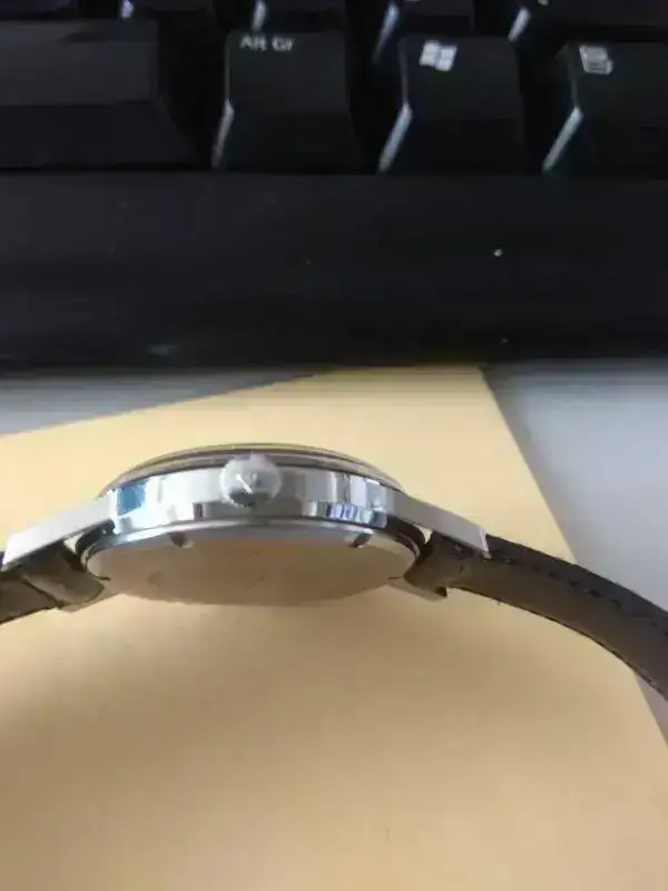 Caja : 34 mm – sin corona, entonces serían 37 mm – , de acero, parece más grande en la mano.