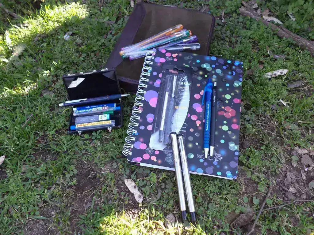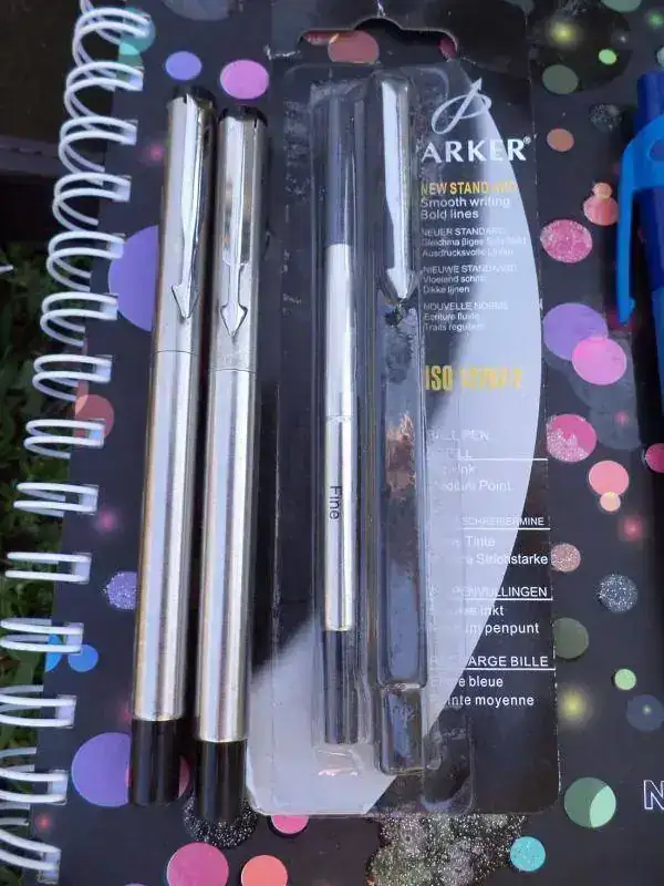 3) Con mi agenda laboral aparecen dos bolígrafos Parker que uso en el trabajo, más otro bolígrafo Parker que está " por si las dudas "...