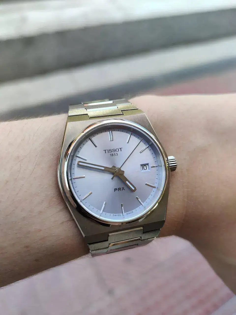Te queda genial! Tenemos una muñeca muy muy parecida, aunque yo comente que aun quedandome mas proporcionado, veia demasiado pequeño el dial y termine pillando el 40 (tambien preferia el color tiffany que es exclusivo del 40).