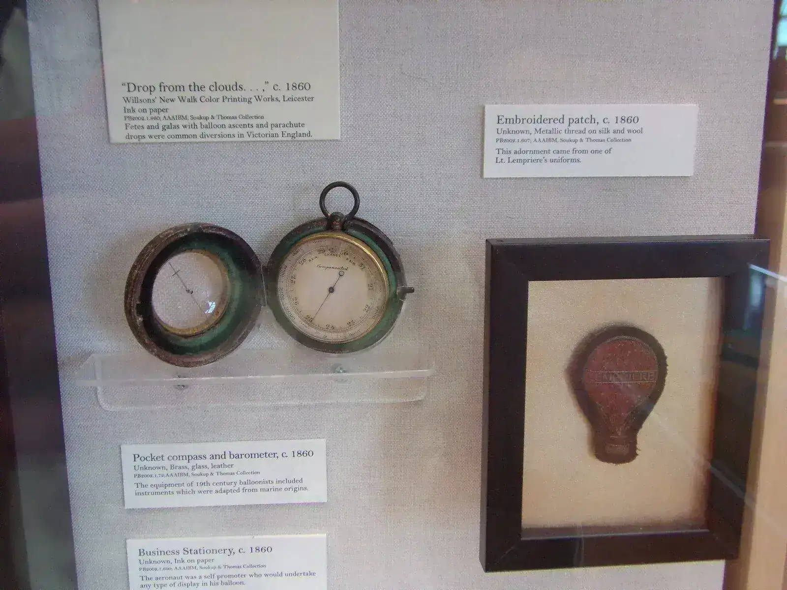 Entre las curiosidades está la góndola original del Breitling Orbiter 3 que en 1999 logró la fenomenal hazaña de circunvalar la tierra en globo por primera vez. Los aventureros fueron el británico Brian Jones y el suizo Bertrand Piccard. La góndola, al igual que los relojes Bulova, fue donada al National Air and Space Museum la que a su vez la comisionó a éste lugar para su exhibición.