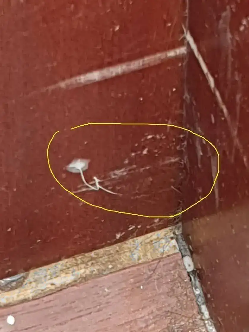 Os pongo foto de la puerta, que no es la mía. Estaban todas las puertas marcadas con hilo de silicona.
