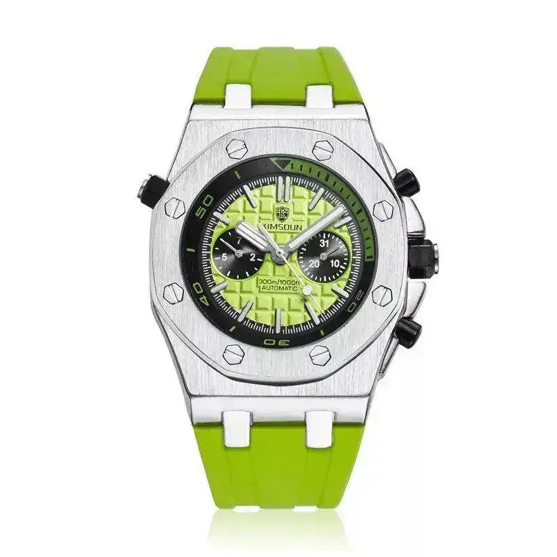 Éste me ha gustado, sobre todo el verde. Automático, ¿Miyota?, ..., 42 mm. Seguramente merece la pena tenerlo en el punto de mira a ver si baja el precio...