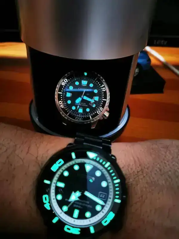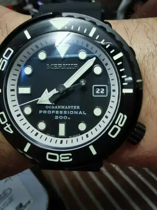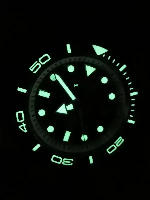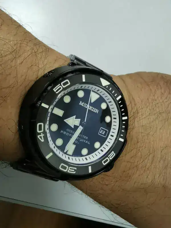 Aquí os presento el nuevo Reginald hulk que me ha caído en San Valentín. A diferencia de los modelos anteriores del sub de Reginald, este tiene unas asas más anchas y mayor altura de caja, el cristal sobresale por encima del bisel más o menos 1,5mm y, el detalle que más me ha gustado, lleva corona roscada. Eso sí, mantiene el mismo precio que la anterior versión, unos 20€.![]()